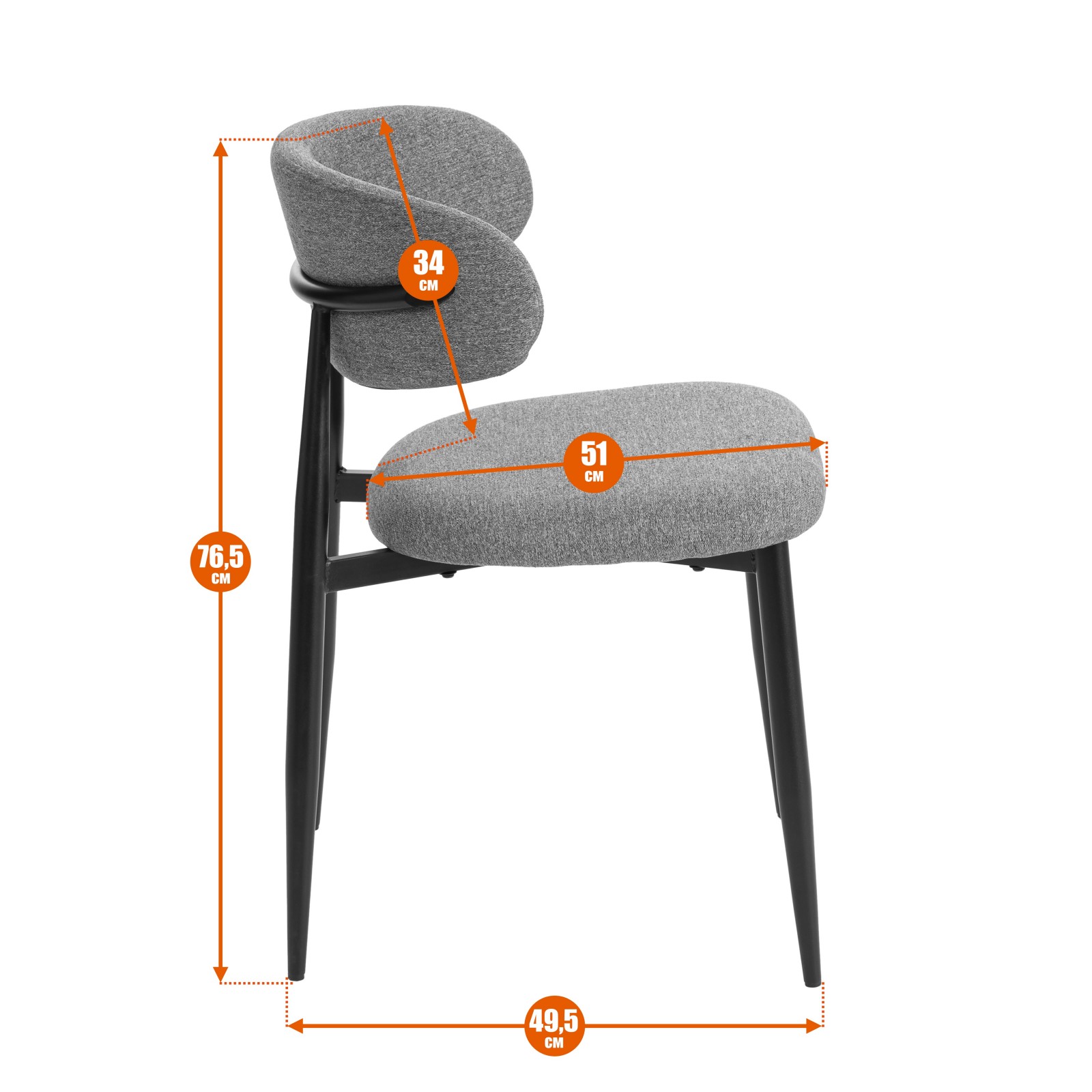 25681 Стул обеденный Belsay/Белси велюр/металл, светло-серый/черный, 46х53х79см