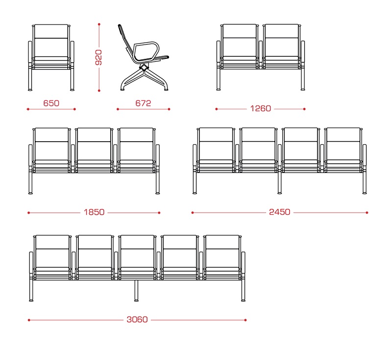 Многоместное кресло "Aero" МС8 - модель, основанная на успешном дизайне секции "Вояж" с измененными конструкциями сидений.