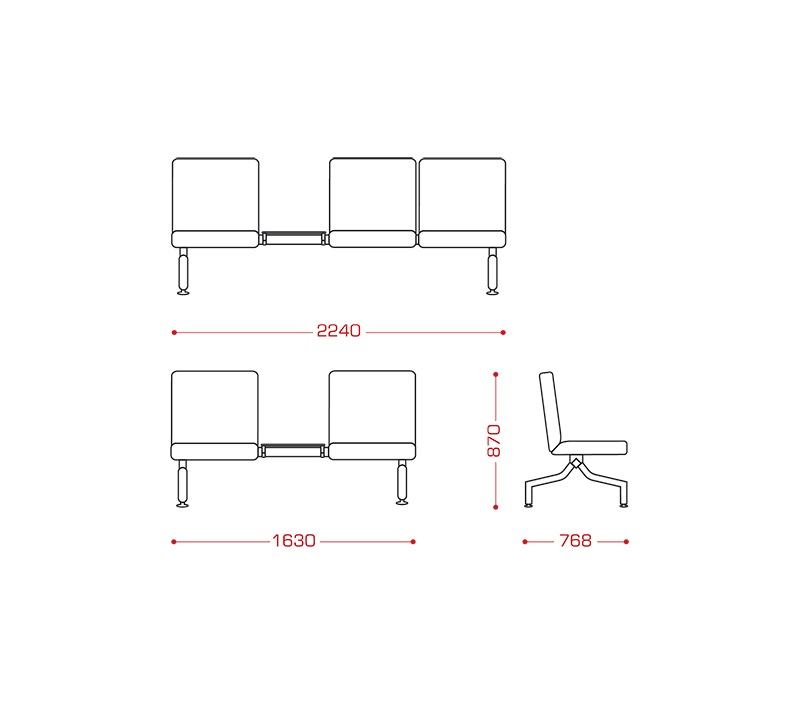 Многоместная секция "Slot" прекрасно впишется в холл или рекреацию медицинского учреждения.