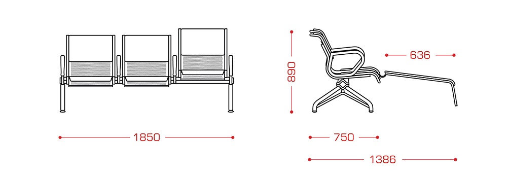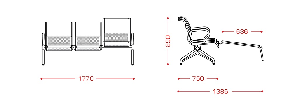Многоместная секция "Вояж" с местом ММГН предназначена для эксплуатации в зонах ожидания общественных мест с большой проходимостью: вокзалах, аэропортах, холлах административных зданий и пр.