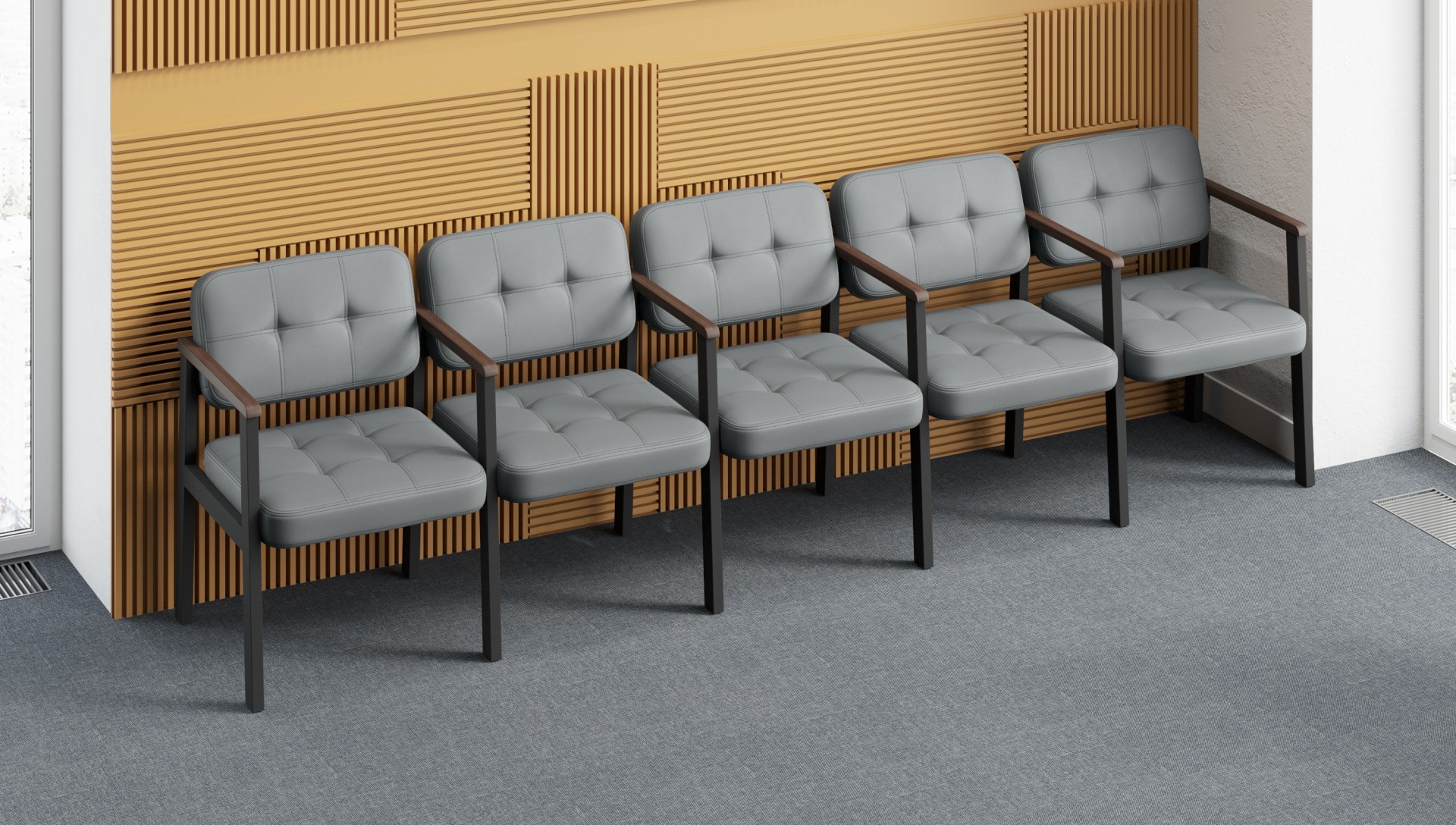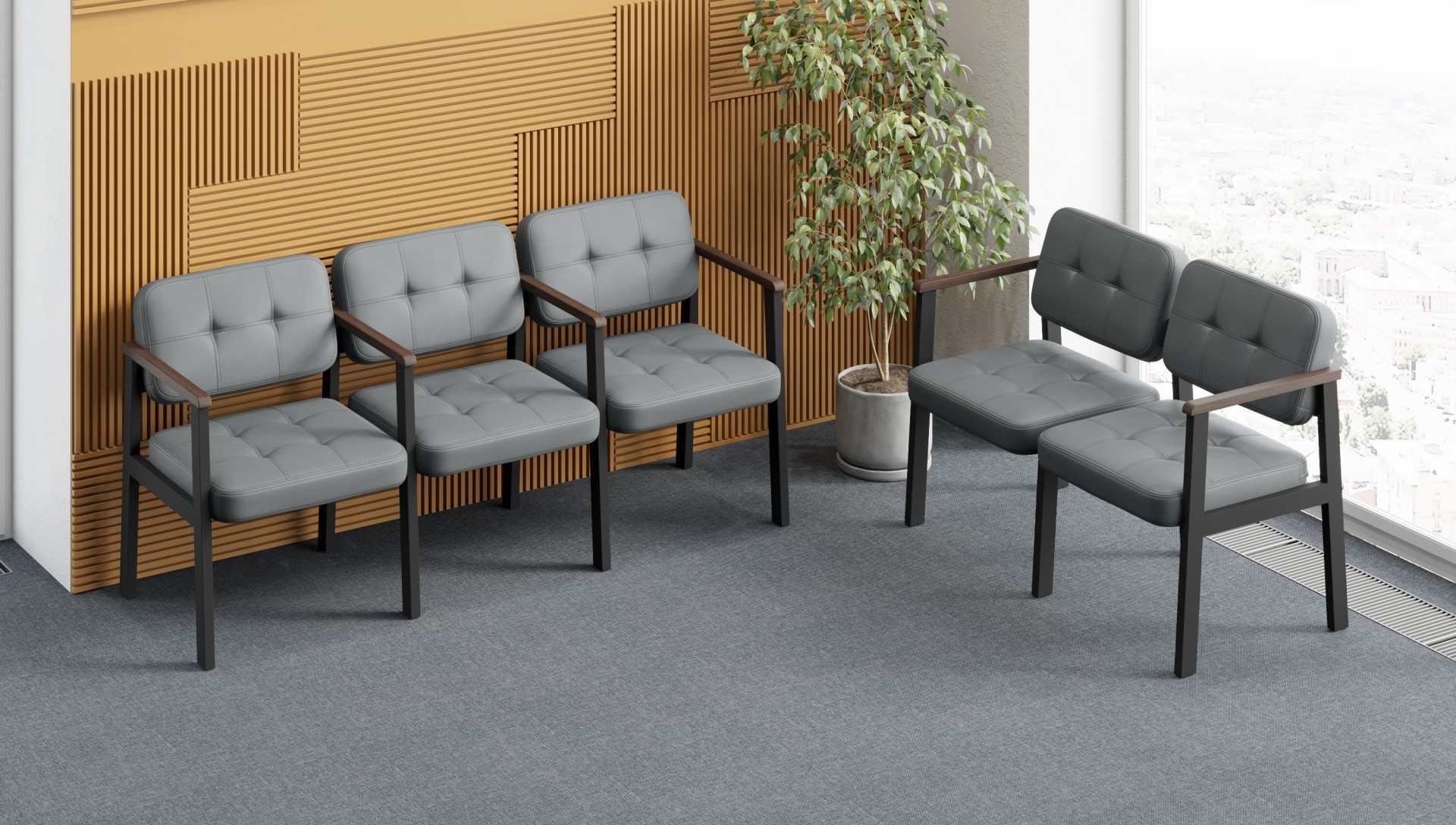 Указана оптовая цена за Секция трехместная с 4-мя подлокотниками ЧСТ-3-2ОП 1750х620х820 при единовременной закупке продукции в количестве от 100 штук в базовом исполнении - материалы обивки 1 кат.*