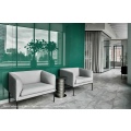 Коллекция "Liro" в складском ассортименте представлена двухместным диваном и креслом, выполненными в шерстяной ткани или коже серого цвета в сочетании с черными стальными опорами.
