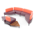 В серию входят модули со спинками, пуфы и столики разных форм, позволяющие реализовать несколько композиционных схем.