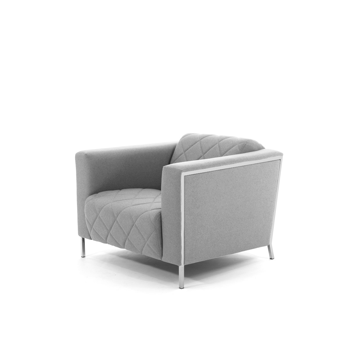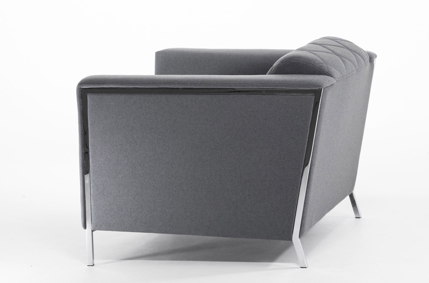 В коллекции "Vispo" мягкость серой шерстяной обивки контрастирует с металлическим блеском хромированных опор.