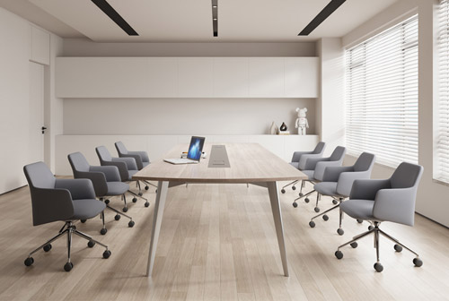 Его форма, собранная и лаконичная, придает характер интерьеру переговорной зоны.