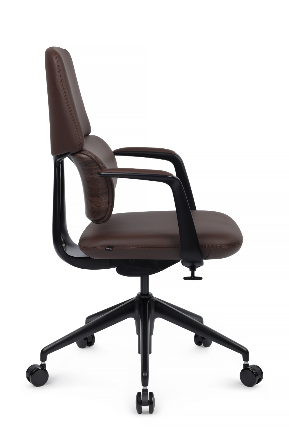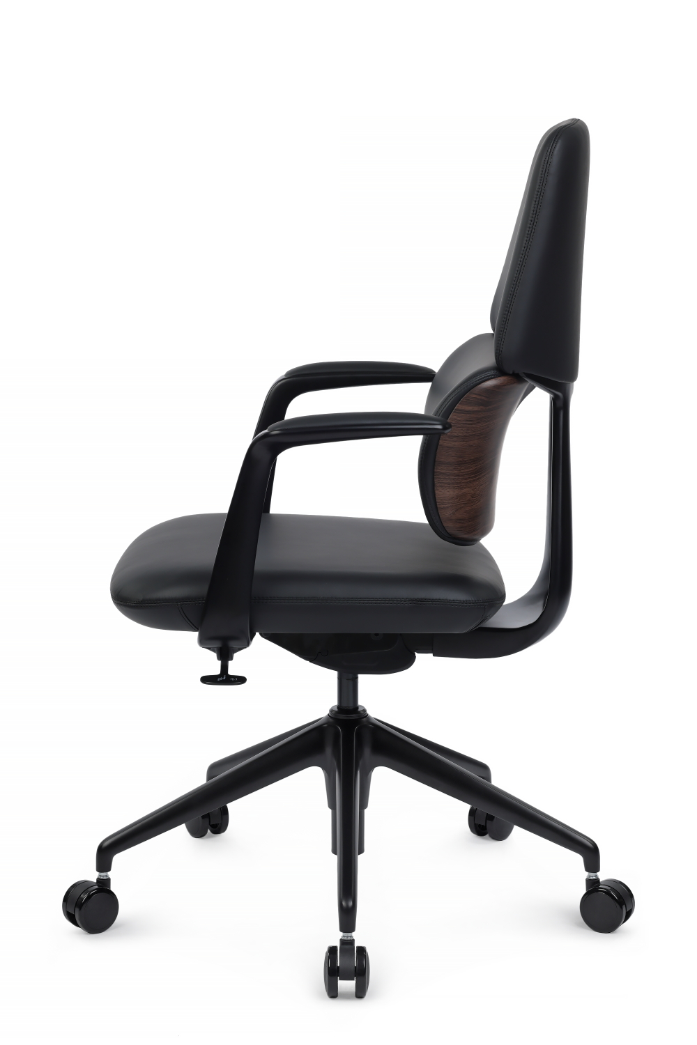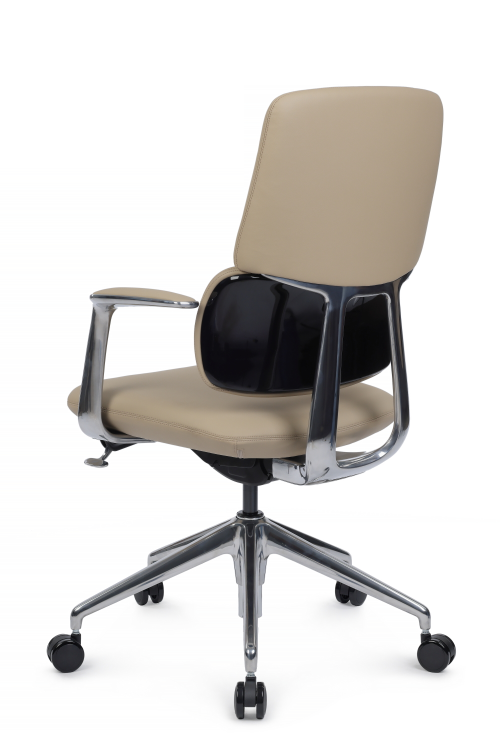 Подлокотники: черный алюминий, с накладками из натуральной кожи в цвет кресла