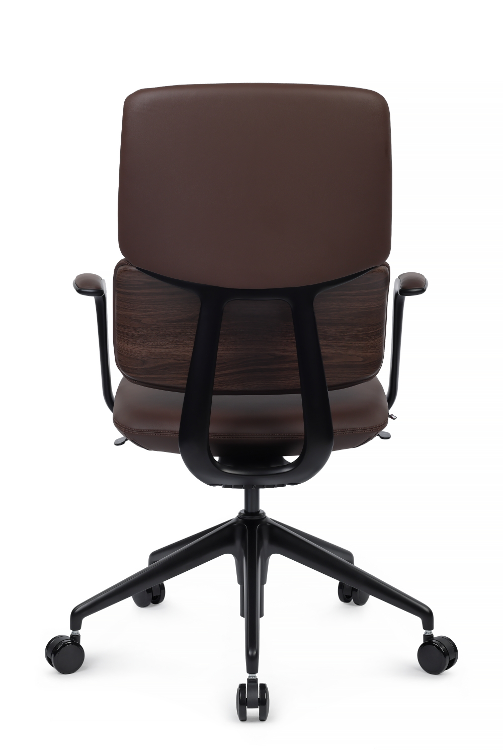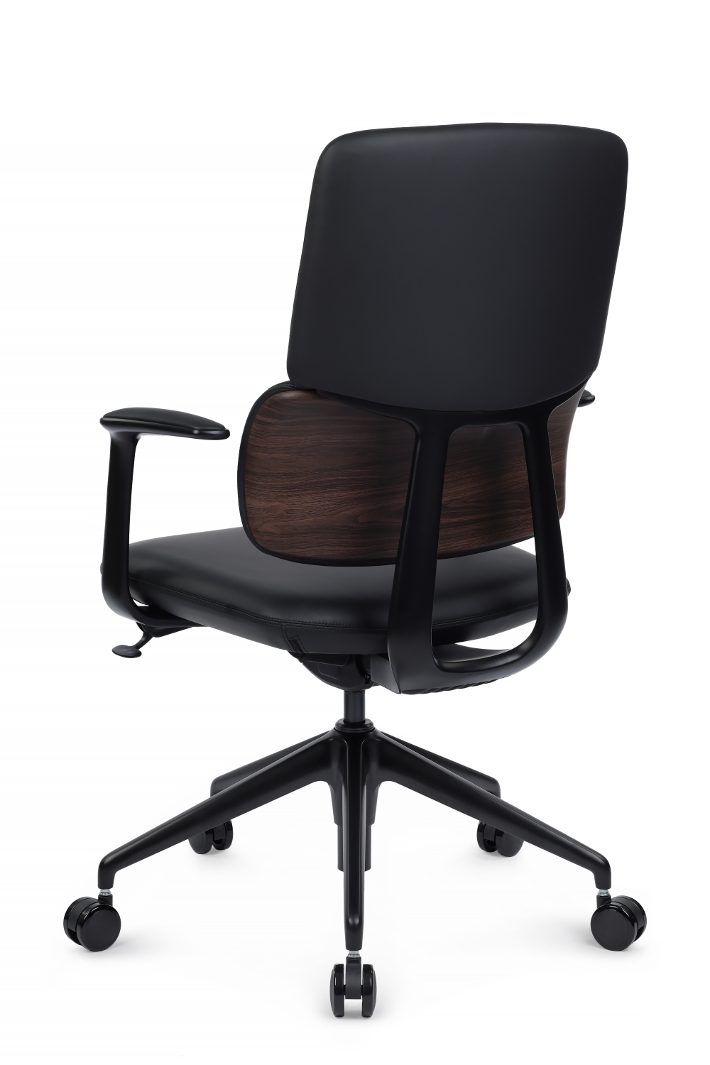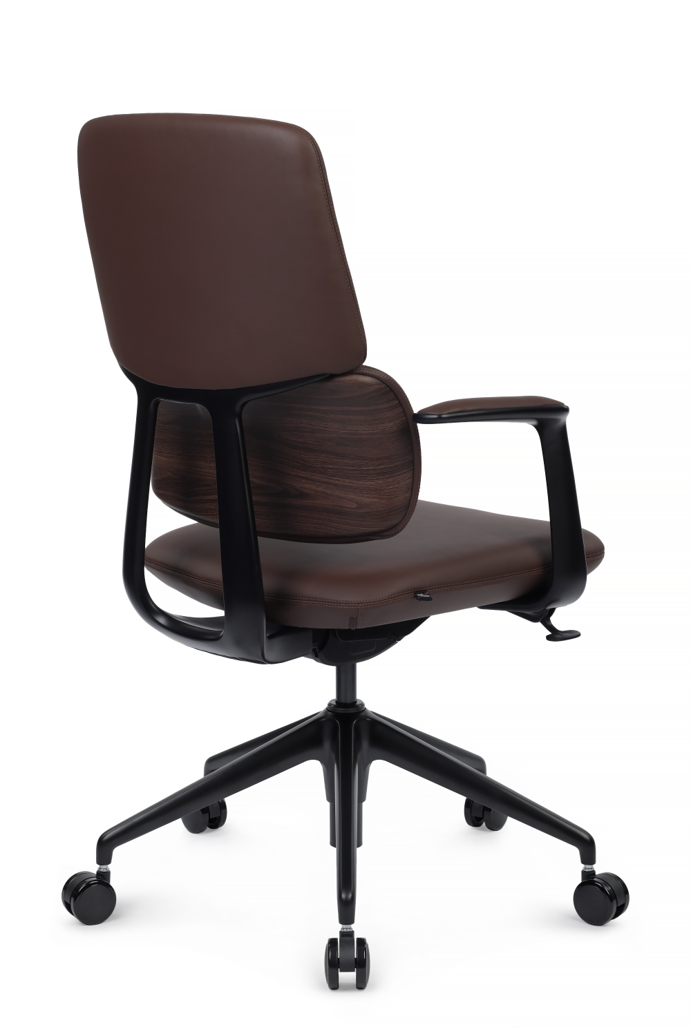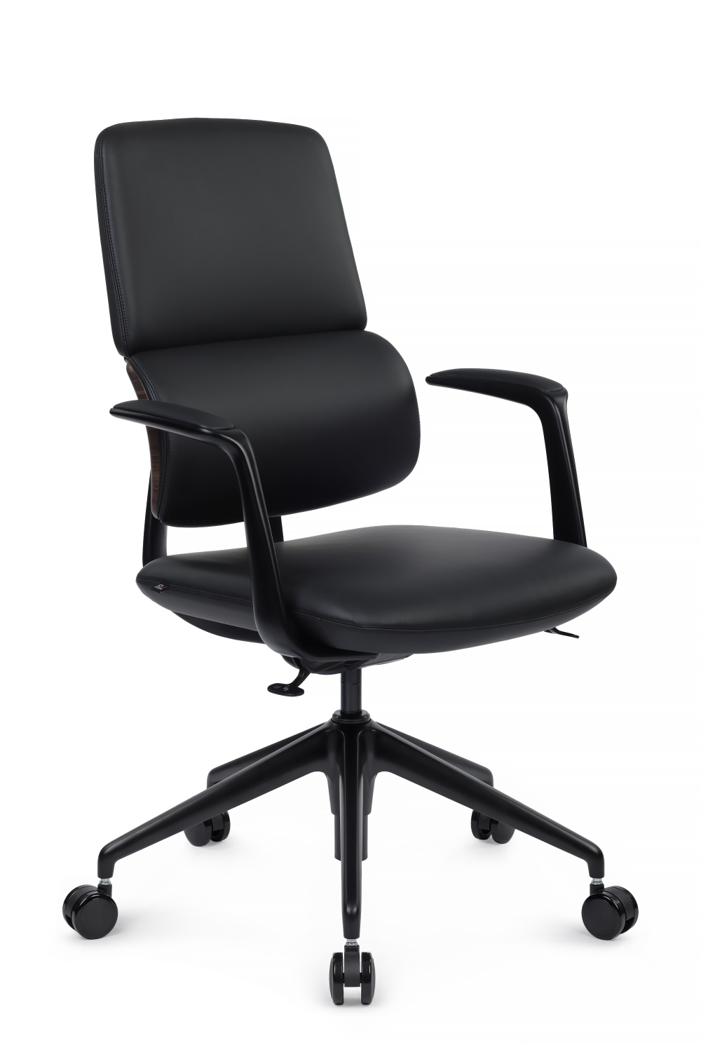 Подлокотники: черный алюминий, с накладками из натуральной кожи в цвет кресла