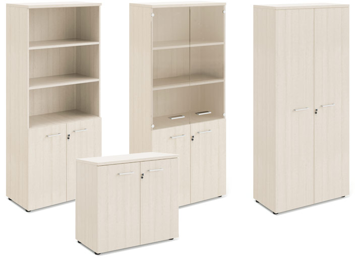 Овальные, расположенные под углом, опоры и многообразие цветовых решений — отличительная черта этой коллекции. Комбинируя между собой различные элементы шкафов, можно сформировать практически любые варианты систем хранения.