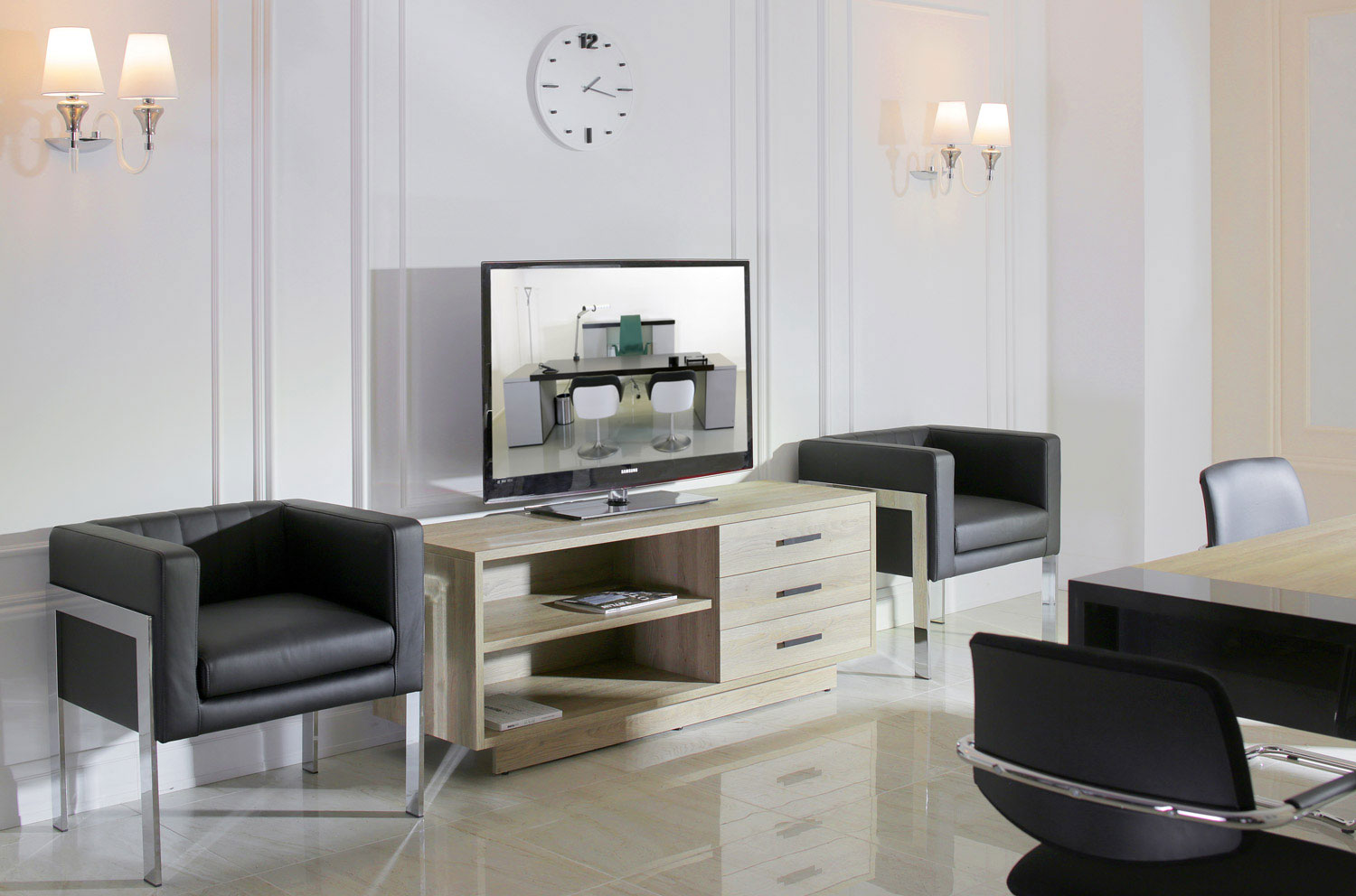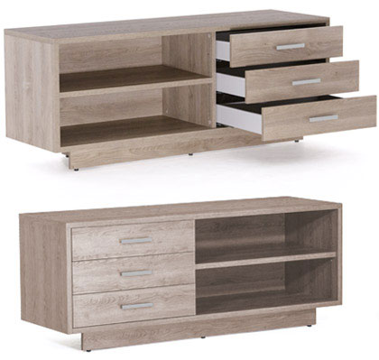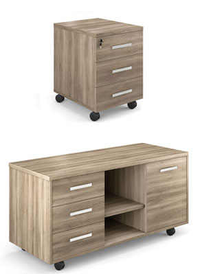 Опорная тумба стола является универсальной и при сборке может быть собрана как правой (RH), так и левой (LH). Каркасы шкафов и тумб, в том числе и задние стенки, выполнены из ЛДСП толщиной 18 мм, цвет ЛДСП — в цвете коллекции.