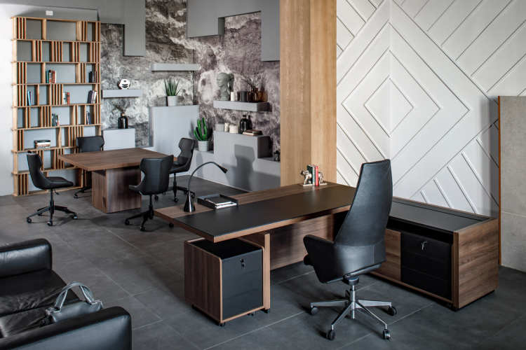 Конструкция элементов доведена до скульптурной четкости. Дизайн функционально обоснован и лаконичен. Прямые линии, ровные плоскости и интересные детали привнесут эстетику и значительность в интерьер вашего офиса.