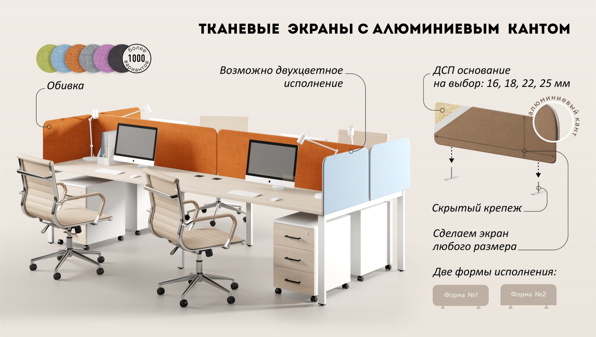 Тканевые экраны "STEEL" ACOUSTIC с алюминиевым кантом