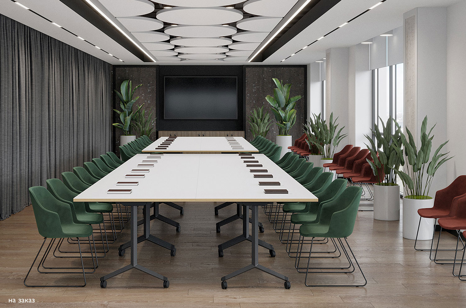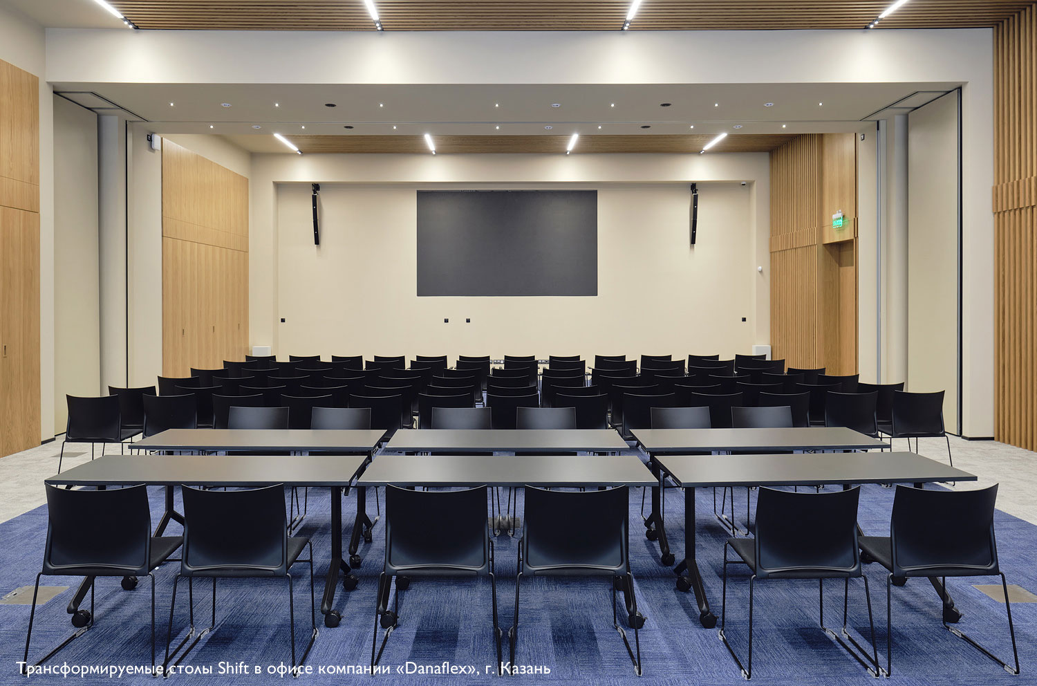 Одно и то же помещение может быть использовано для проведения конференций, тренингов, совещаний в малых рабочих группах, в качестве столовой.