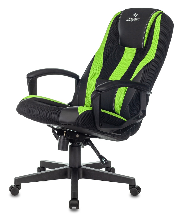 Кресло игровое Zombie 9 черный/салатовый ткань/эко.кожа крестов. пластик