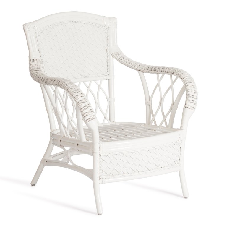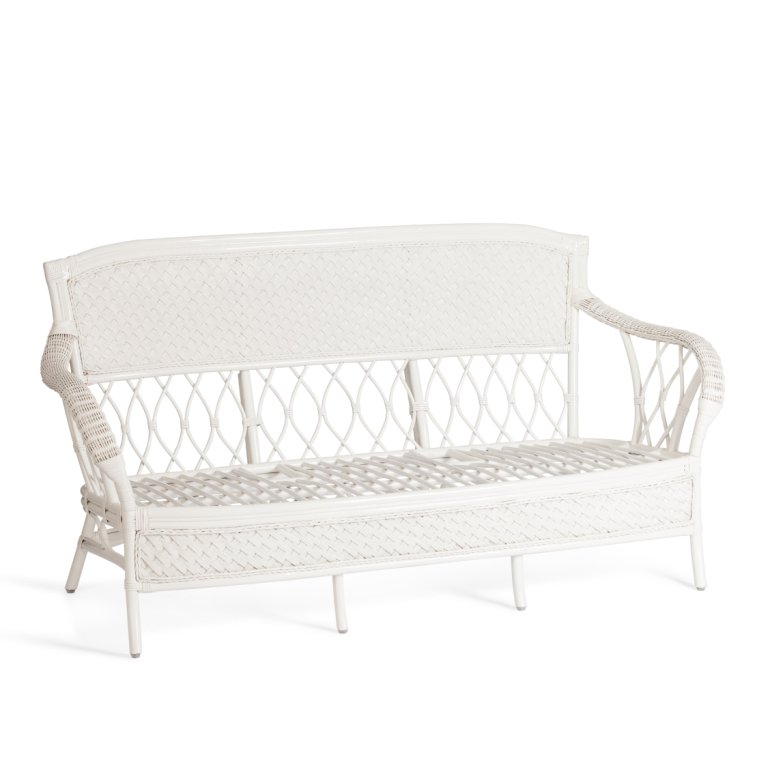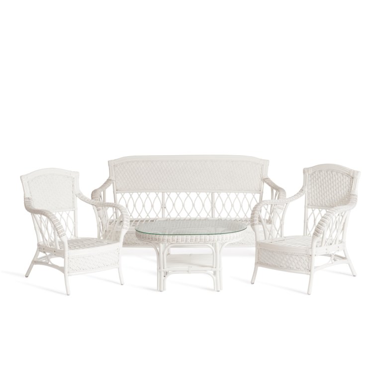 10165 Комплект для отдыха "ANDREA" (диван + 2 кресла + журн. столик со стеклом + подушки), натуральный ротанг, TCH White (белый), ткань рубчик, цвет кремовый
