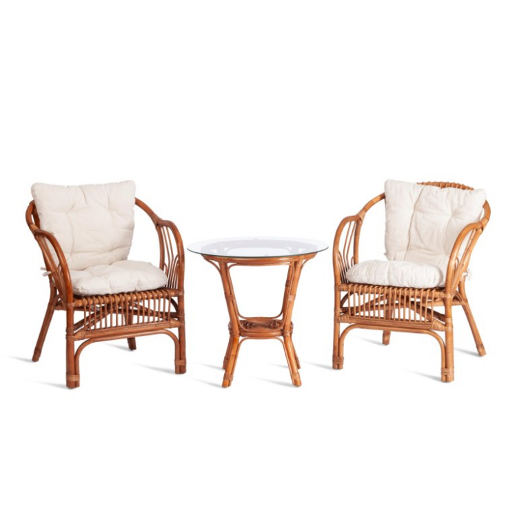 13343 ТЕРРАСНЫЙ КОМПЛЕКТ "NEW BOGOTA" (2 кресла + стол) /с подушками/ ротанг, кресло 61х67х78,5 см, диаметр стола 50см, walnut (грецкий орех)