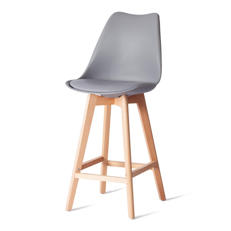 21242 Стул барный TULIP BAR (mod. C1014H-1) пластик/дерево, 42 х 47,5 х 104 см, Grey (серый) 92717 / натуральный