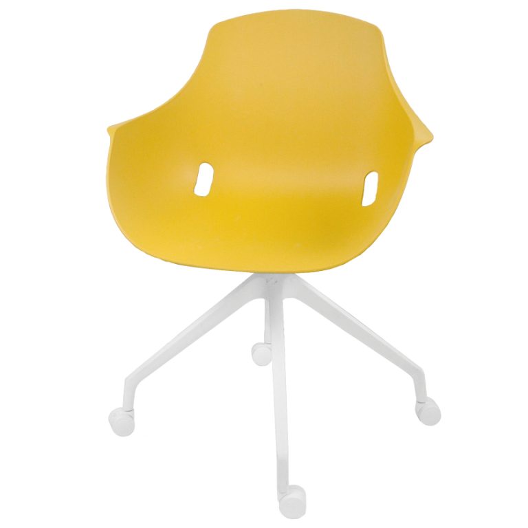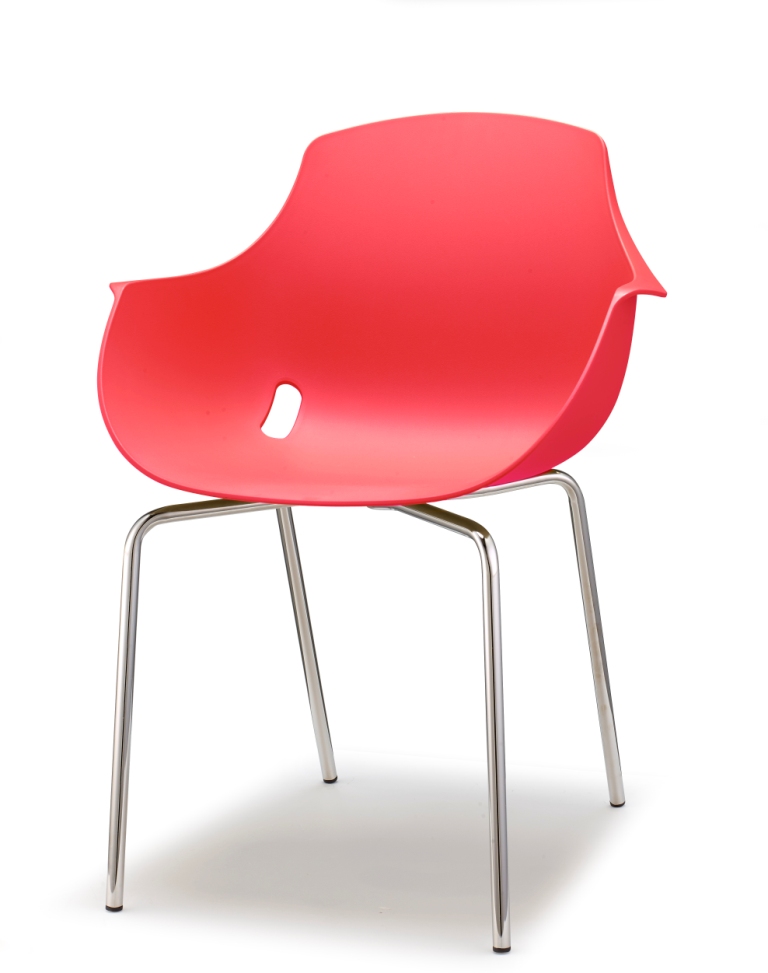 Стул, может быть, выполнен на четырех вариантах каркаса, в том числе на деревянных ножках и доступен для заказа в 6 различных цветах пластика.