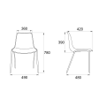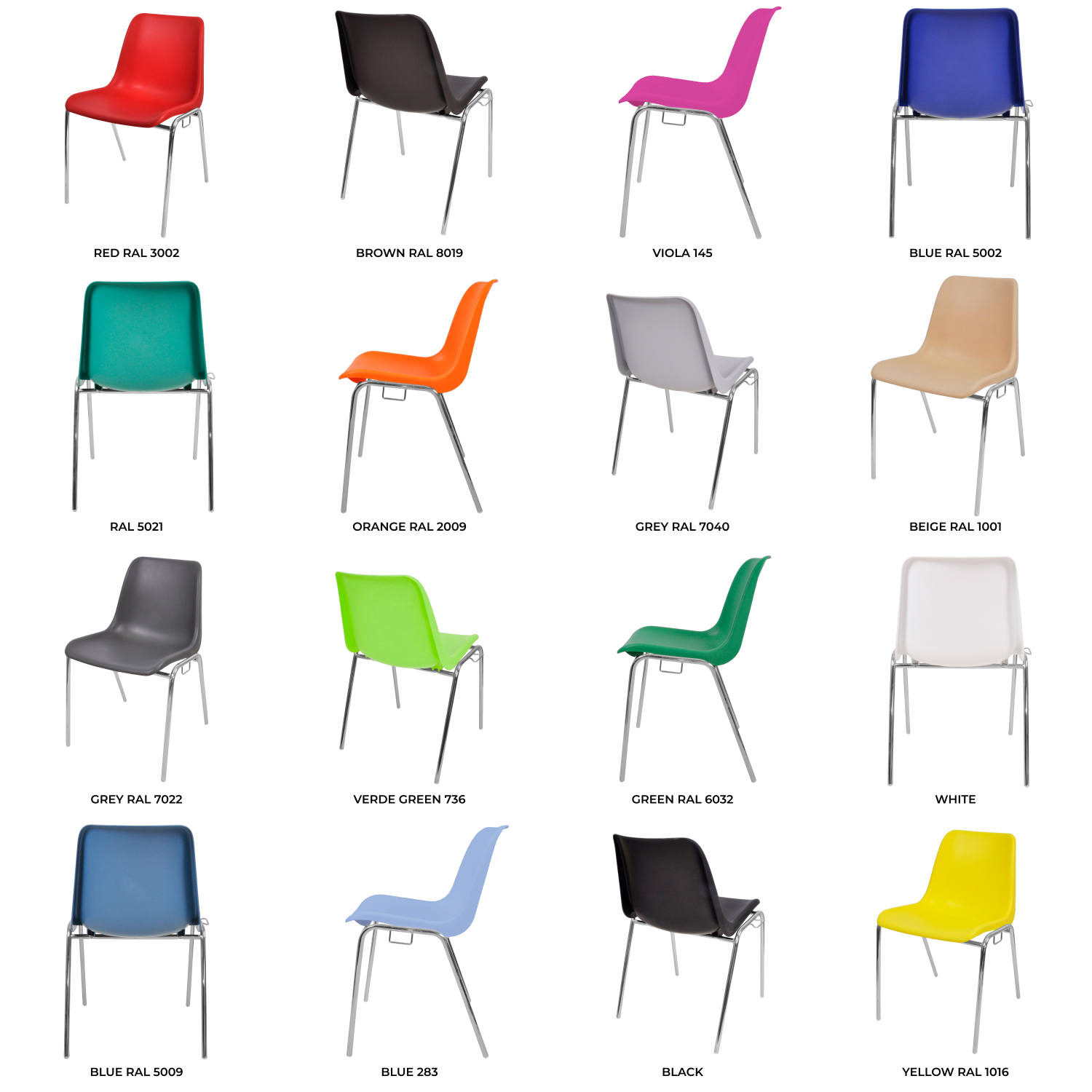 Стул, может быть, выполнен на шести вариантах каркаса и доступен для заказа в 16 различных цветах пластика.