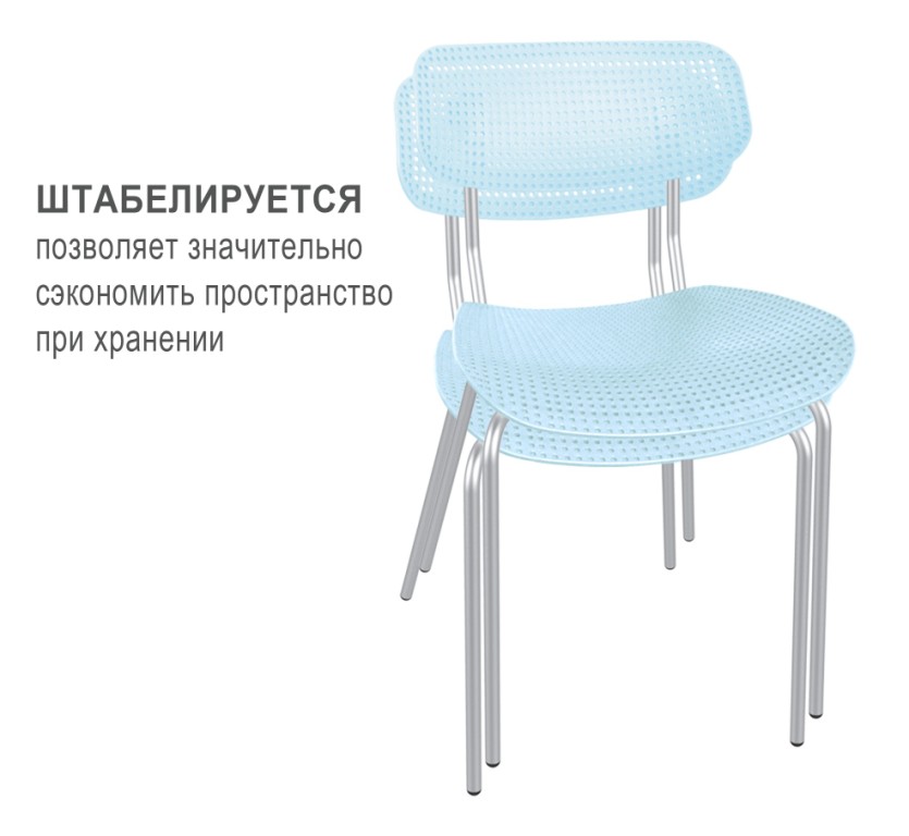 Стул ШТАБЕЛИРУЕТСЯ, что позволяет значительно экономить пространство при хранении.