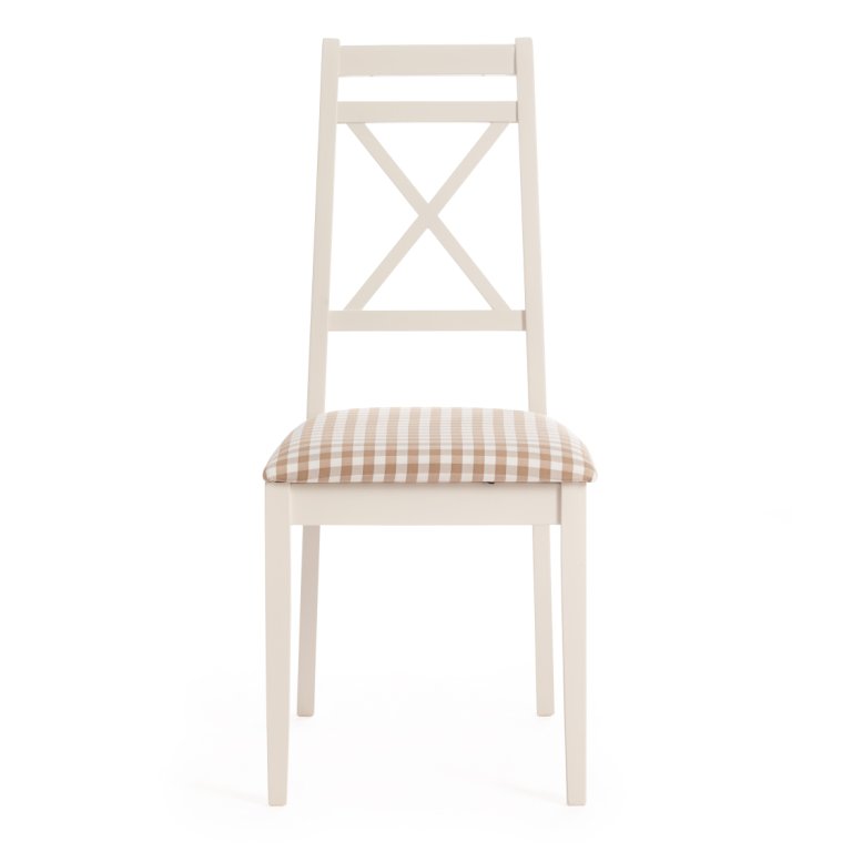 12349 Стул Picasso (PC-SC) дерево гевея, 45х53х97см, ivory white (слоновая кость 2-5), ткань: клетка мелкая (S505-18)