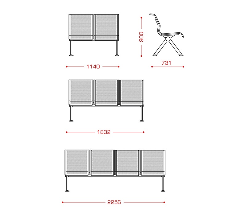 Главным приоритетом серии "Айрон" является легкий, но прочный каркас и продуманная форма спинки, которая поддерживает осанку в естественном положении, минимизируя усталость даже при длительном ожидании. Дополнительно конструкция оснащена регулируемыми по высоте подпятниками, позволяющими адаптировать ее к неровным поверхностям.