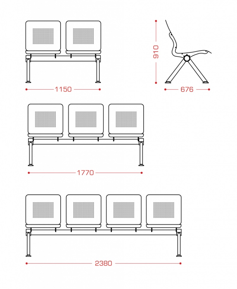 "Lucky" (4-х местн.) мод.А25/2-04 без подлокотников, металлический каркас – труба Ф76, Ф89, труба плоско-овал. 50*30, лист 3 мм, 5 мм, перфорир. сиденья, 86180,00 РУБ.