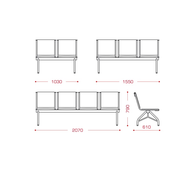 Секция "Тайм" СМ86 - это стильное и функциональное решение, созданное для интерьеров современных спортивных комплексов. Покрытие каркаса выполнено полимерно-порошковым методом, что дает дополнительную защиту от коррозии и устойчивость к механическим повреждениям.