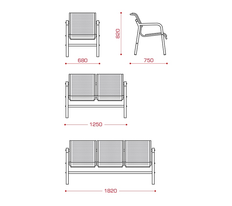 Travel без МЭ (3-х местн.) металл мод.МС5/1-03 металлический каркас – труба пл./овал. 50х30, 30х15, перфорир. сиденья, 36820,00 РУБ.