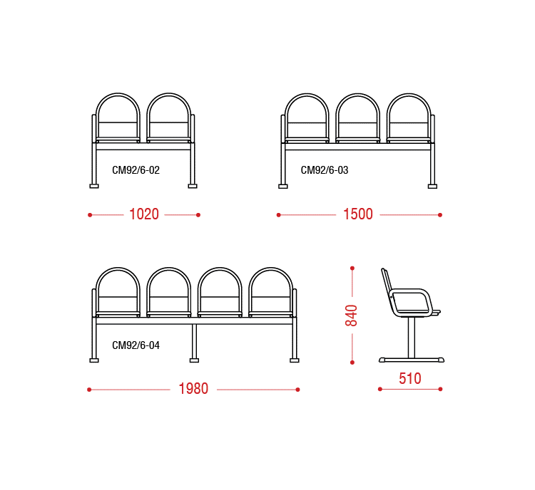 КРЕСЛА ДЛЯ ВЕСТИБЮЛЕЙ, ХОЛЛОВ И АДМИНИСТРАТИВНЫХ ПОМЕЩЕНИЙ ТРОЙКА 2 П мод. CМ92/6