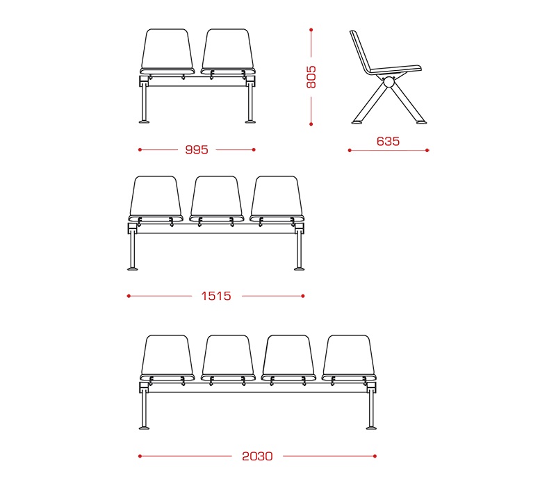 Многоместная секция "Вектор" Контур БП с регулируемой по высоте стойкой предназначена для эксплуатации в зонах ожидания общественных мест с большой проходимостью: вокзалах, аэропортах, холлах административных зданий и пр.