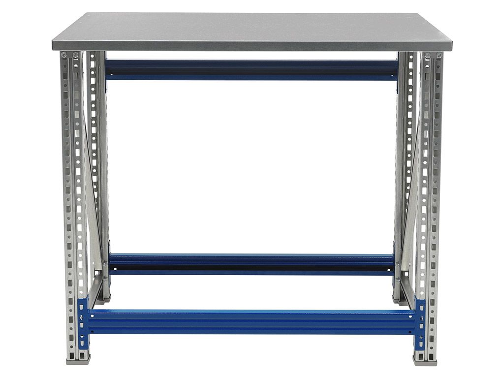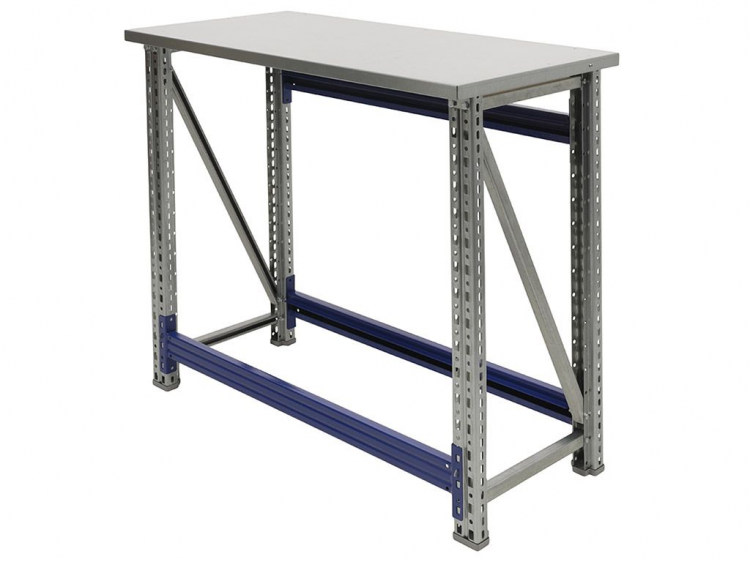 Основные элементы верстака (опоры, полка, накладка на столешницу) изготовлены из оцинкованной стали, что позволяет устанавливать его в местах с повышенной влажностью.