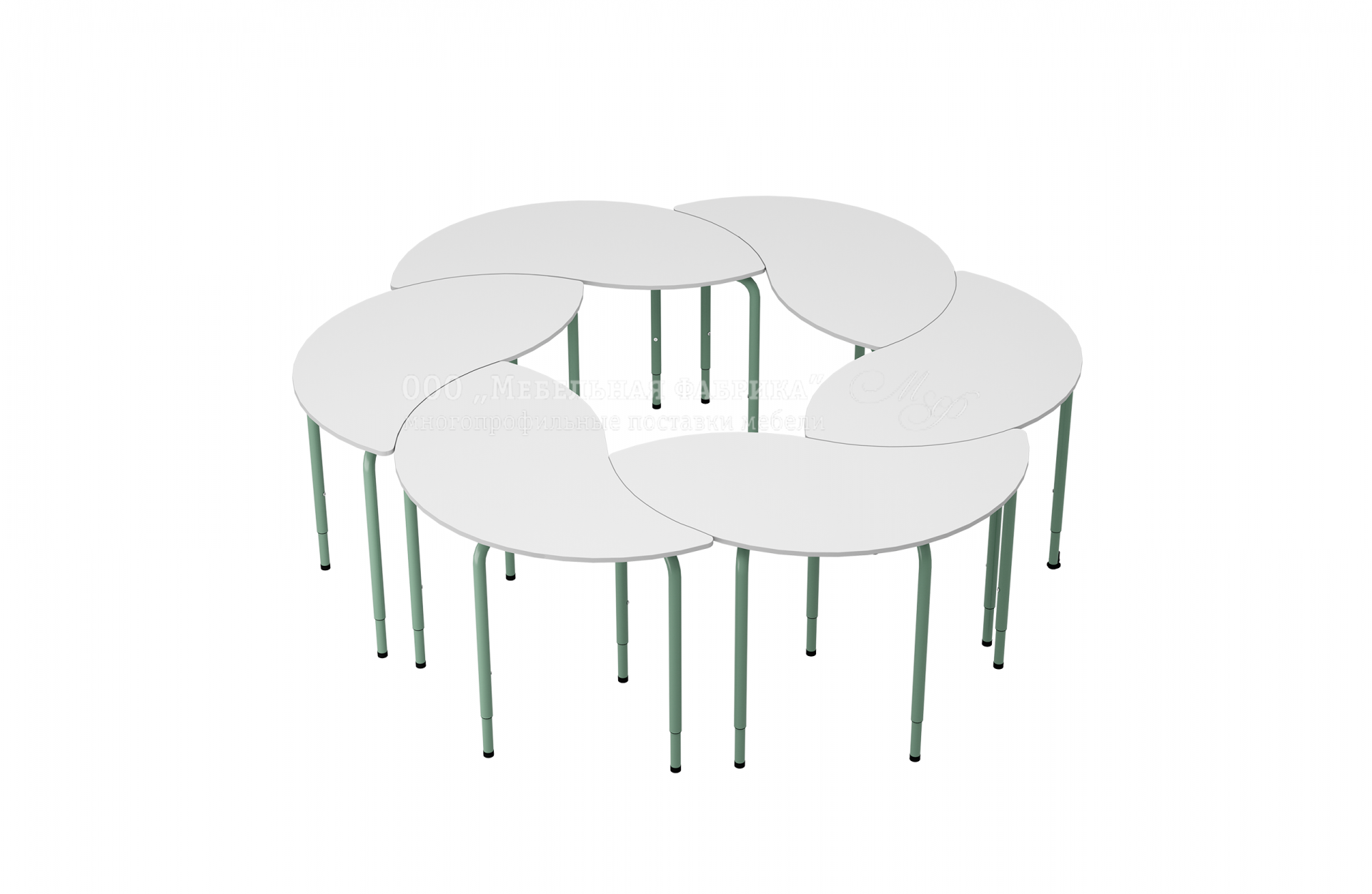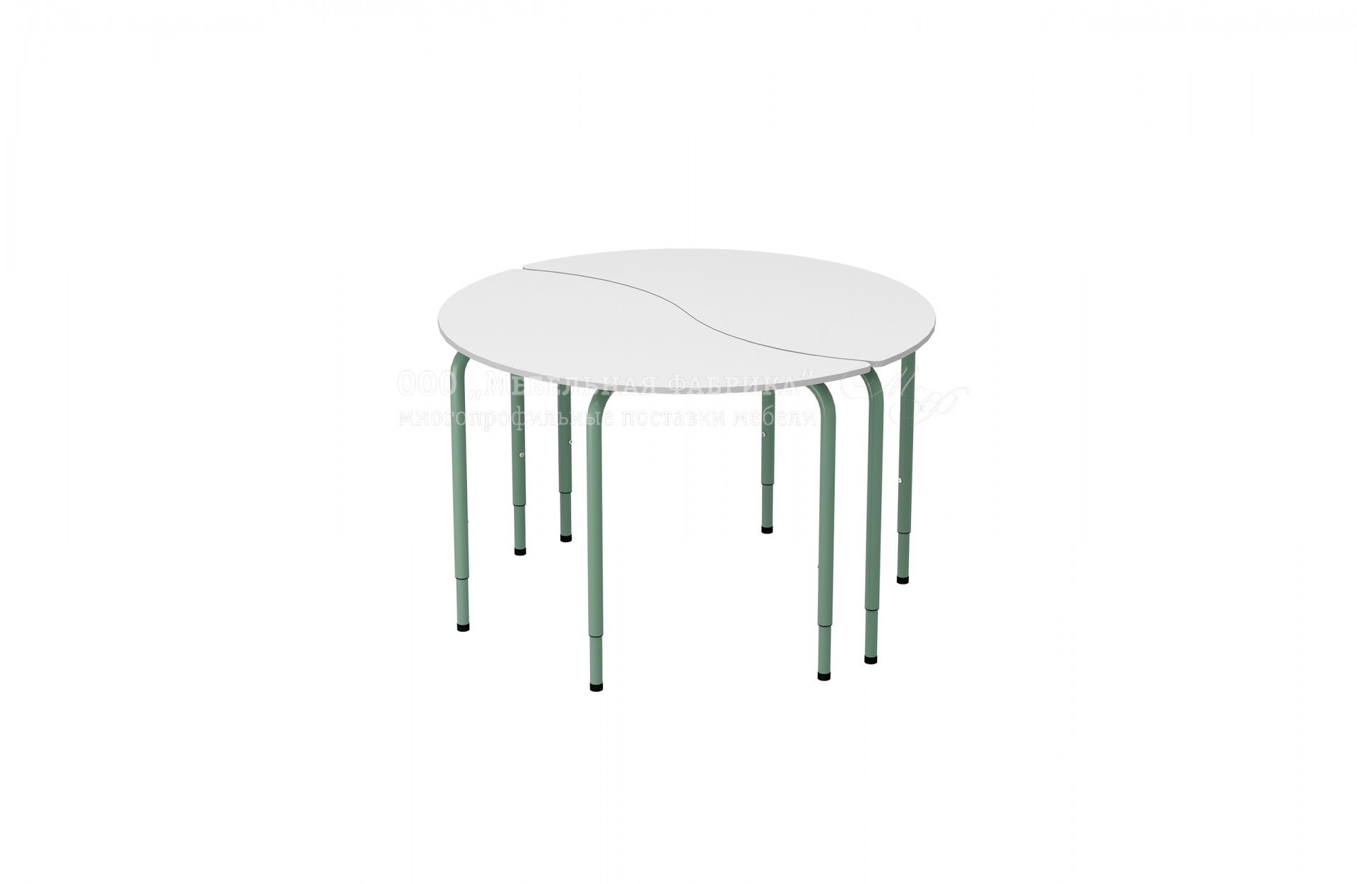 Logic (инь-ян) регулируемый, пластик HPL белый, скругл. углы, кромка ПВХ цвет белый, мод.СТS-9-Р регулируемый сегмент (3-5, 5-7гр.р.), металлический каркас – труба Ф32, Ф38