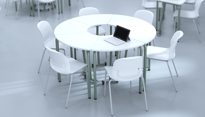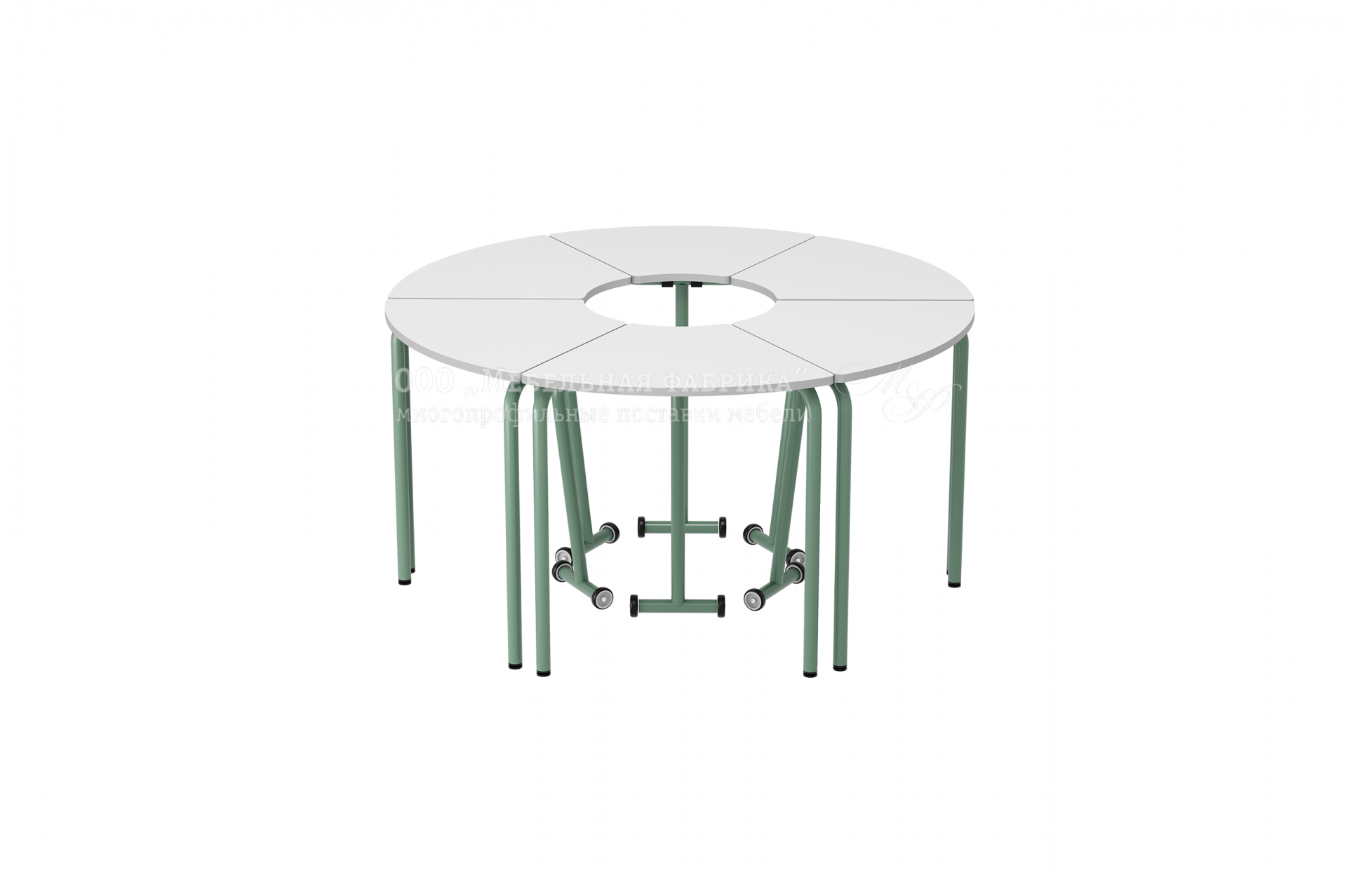 FLAP подходят для обустройства помещений и творческих пространств различных размеров и нестандартной планировки. Их уникальная форма столешницы – трапециевидная с закругленными углами – образует круг, когда столы установлены вплотную друг к другу (6 секций). Не регулируются по высоте, но могут быть изготовлены в определенной ростовой группе. Благодаря колесикам столы легко перемещаются, а также компактно складываются в горизонтальную стопку, экономя место. Столешницы изготовлены из качественного ДСП S=18мм с кромкой ПВХ и пластиковым покрытием. Поверхность столов антибликовая, что предотвращает отражение света.