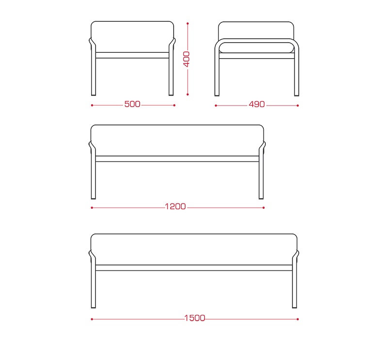 Банкетка Клауд 3-х местная, 1500х490х400, мод. БМ13-03 металлический каркас –труба Ø19 мм, пл.-овал. 30х15 мм, 40х20 мм, 16160,00 руб.