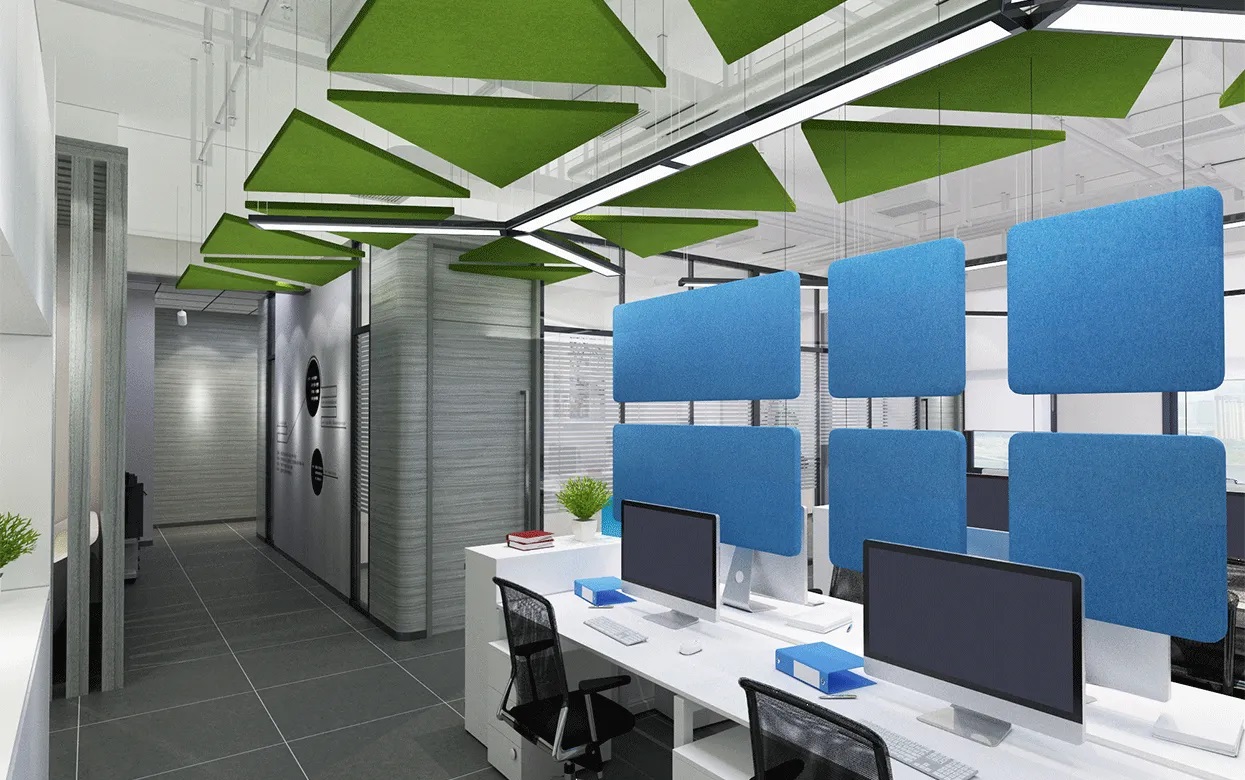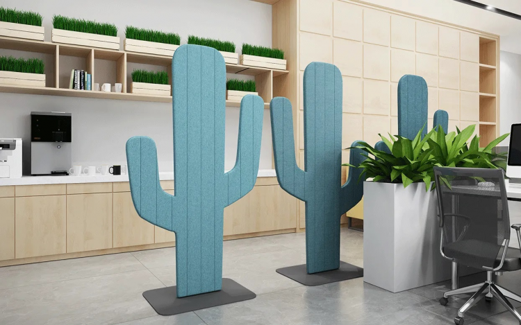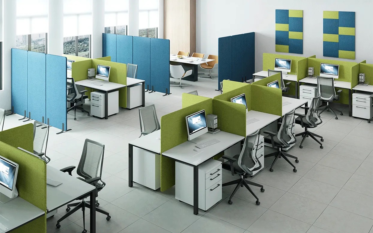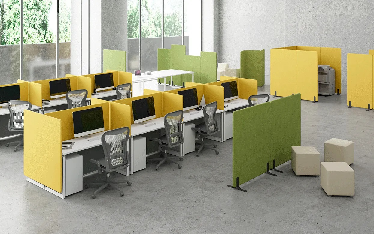 Серия «АКУСТИК» является идеальным решением для опен спейс пространств, в которых необходимо совместить принципы открытой планировки и тихие и конфиденциальные зоны без отвлекающих факторов. «АКУСТИК» включает в себя различные шумоподавляющие решения, начиная с настольных экранов, заканчивая фигурными напольными панелями.