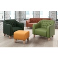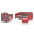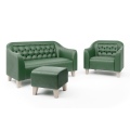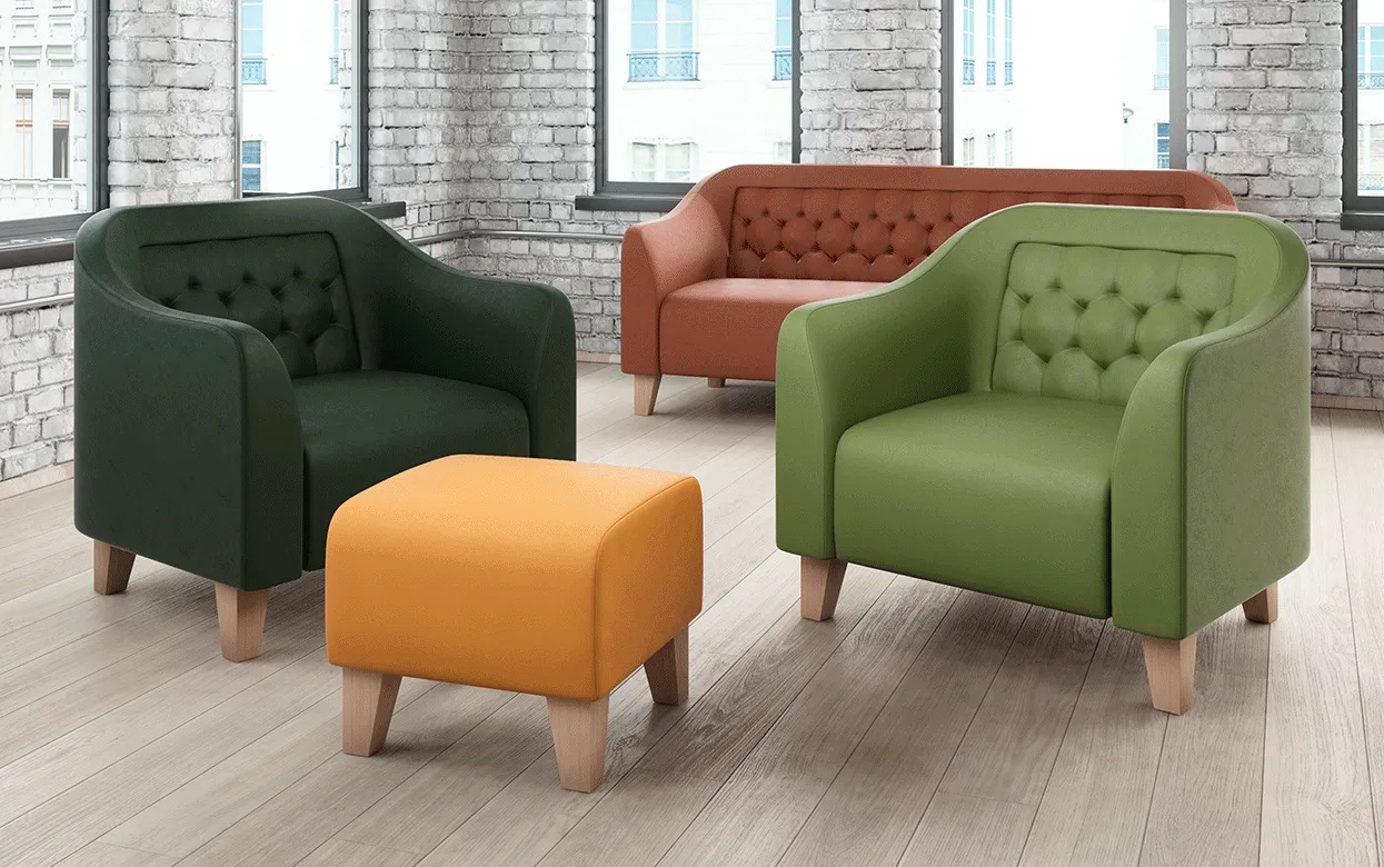 Декоративная вставка на спинке с утяжкой и деревянные ножки придают изделию официальный вид и задают деловой тон всему помещению.