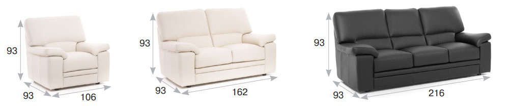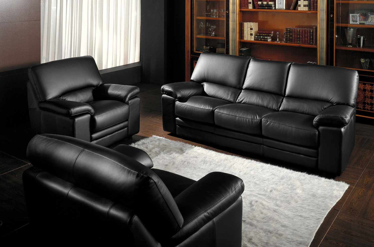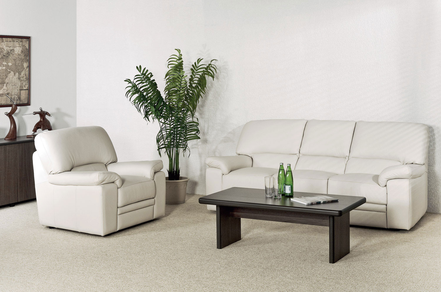 Модель "Ella" в складском ассортименте представлена трехместным диваном и креслом, выполненными в черной или бежевой коже.