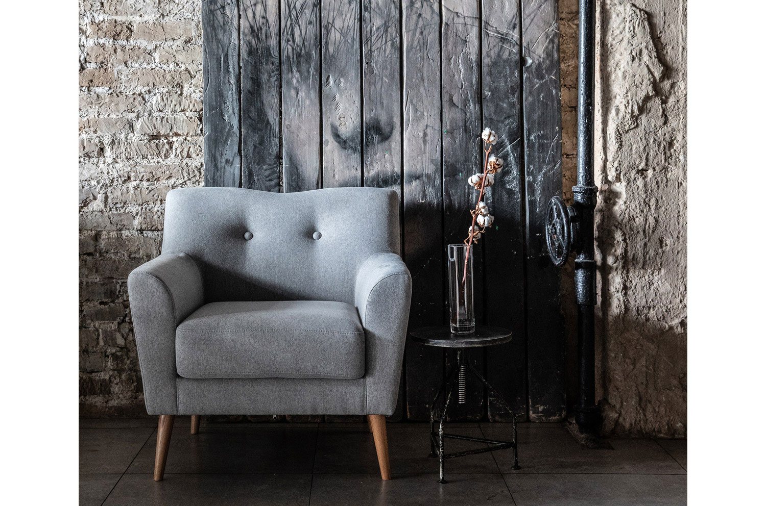 Обивка — жаккардовая ткань серого цвета, состав — 100% полиэстер, мягкая на ощупь и износостойкая (более 80 000 циклов на тесте Мартиндейла).