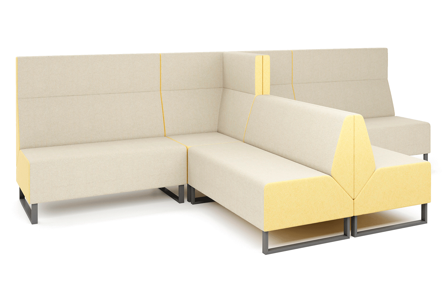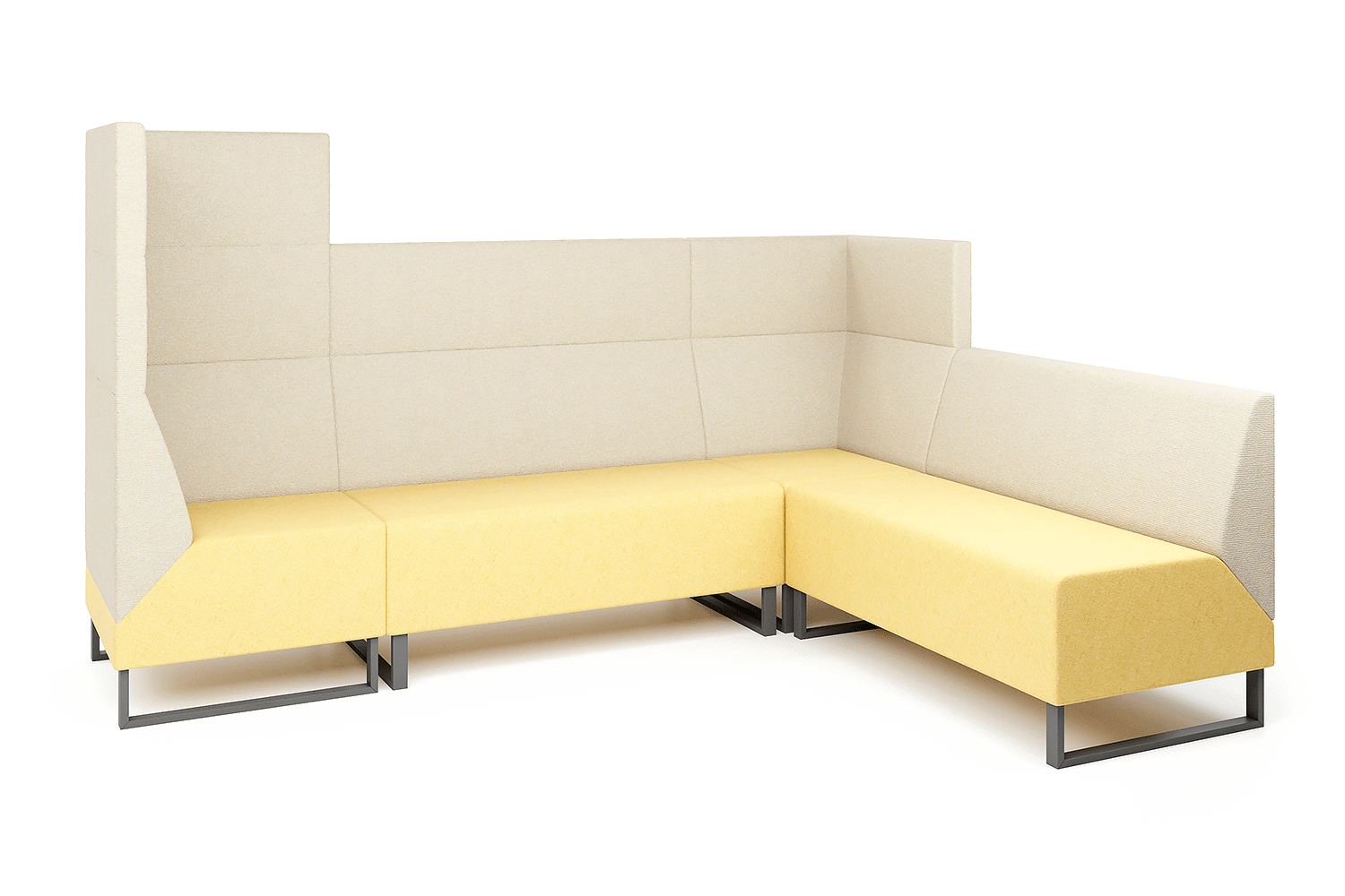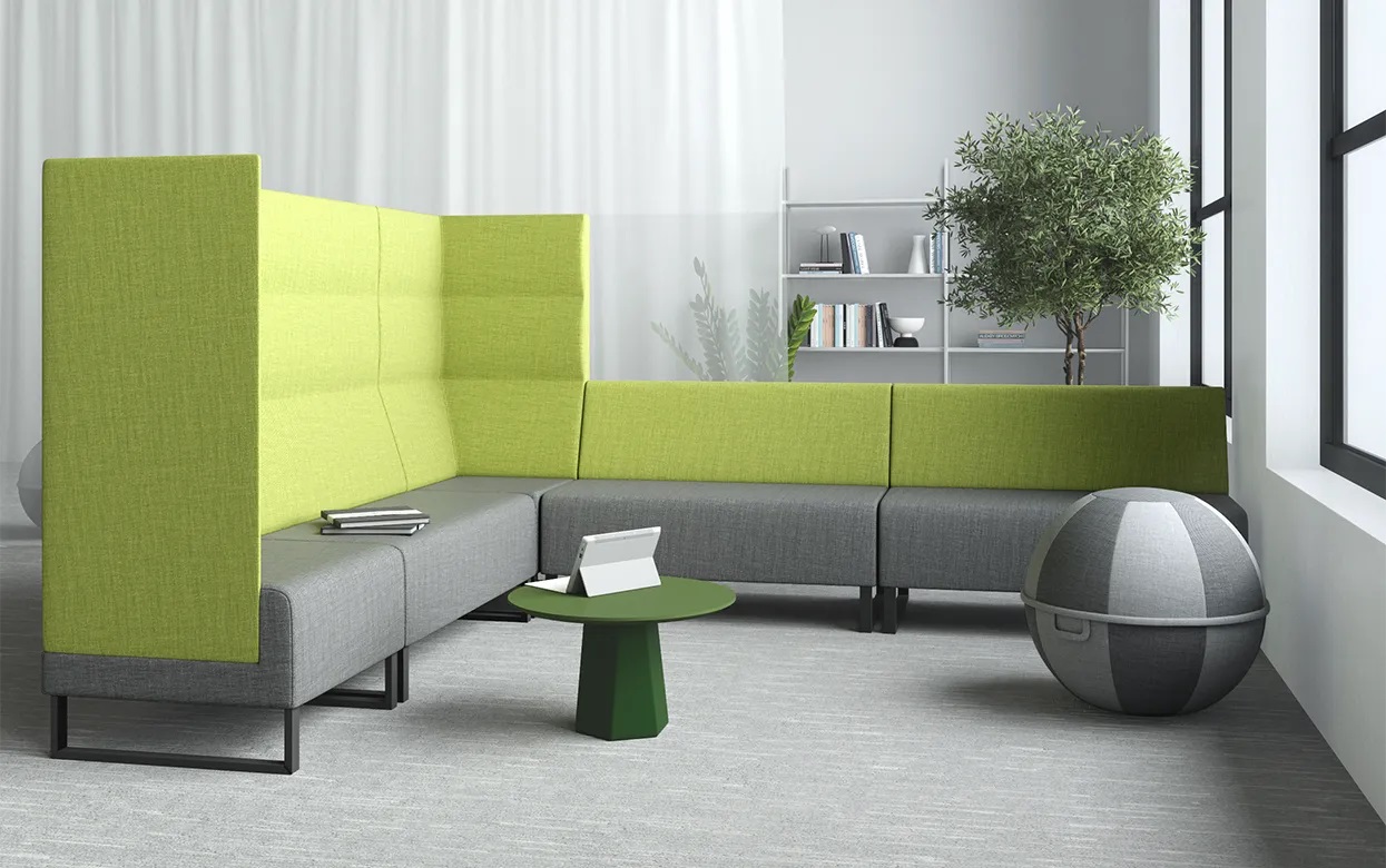 Три уровня высоты спинки позволяют создавать различные компоновки закрытого, открытого и полузакрытого типов, адаптируя их к большим и малым общественным помещениям.