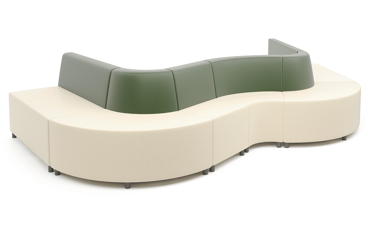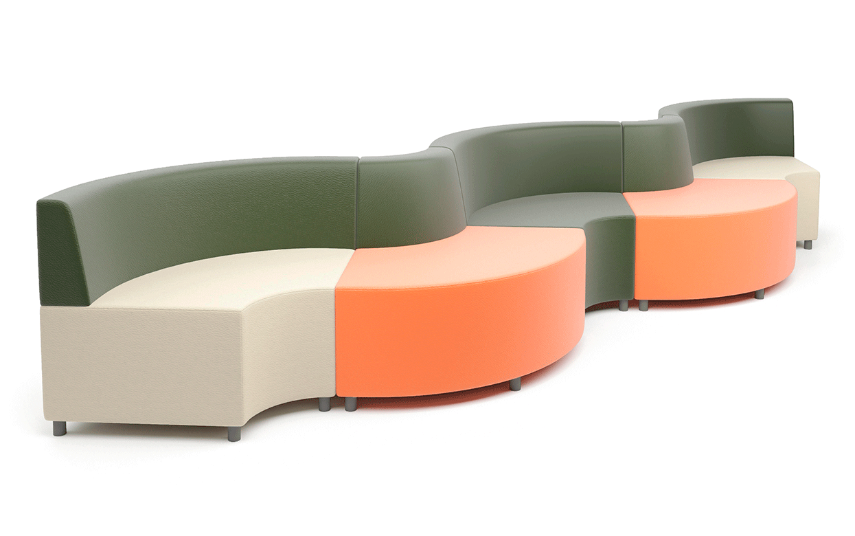 Входящие в состав элементы дают возможность компоновать различные волнообразные комбинации с разной глубиной посадочного места, круглые композиции со смещенным центром и обыгрывать пространства вокруг колонн диаметром до 500 мм.