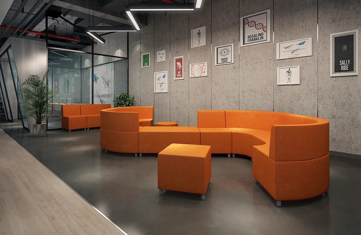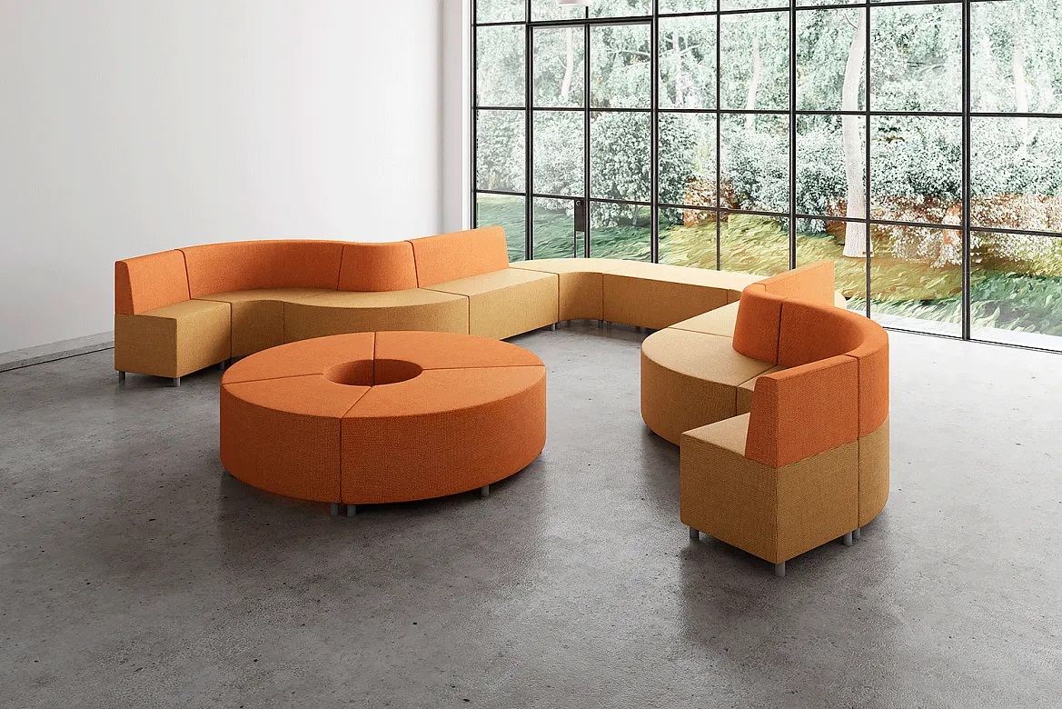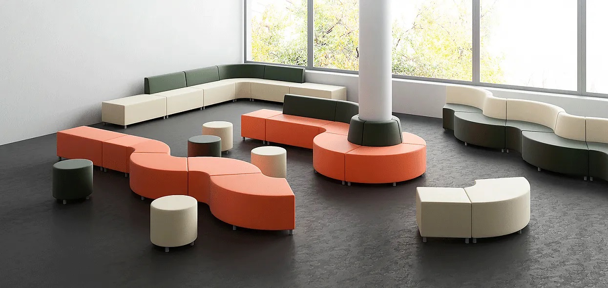 Серия “МОБИЛЕ” состоит из модулей и пуфов двух глубин, что позволяет создавать комфортную и функциональную обстановку в помещениях с ограниченным пространством и колоннами.