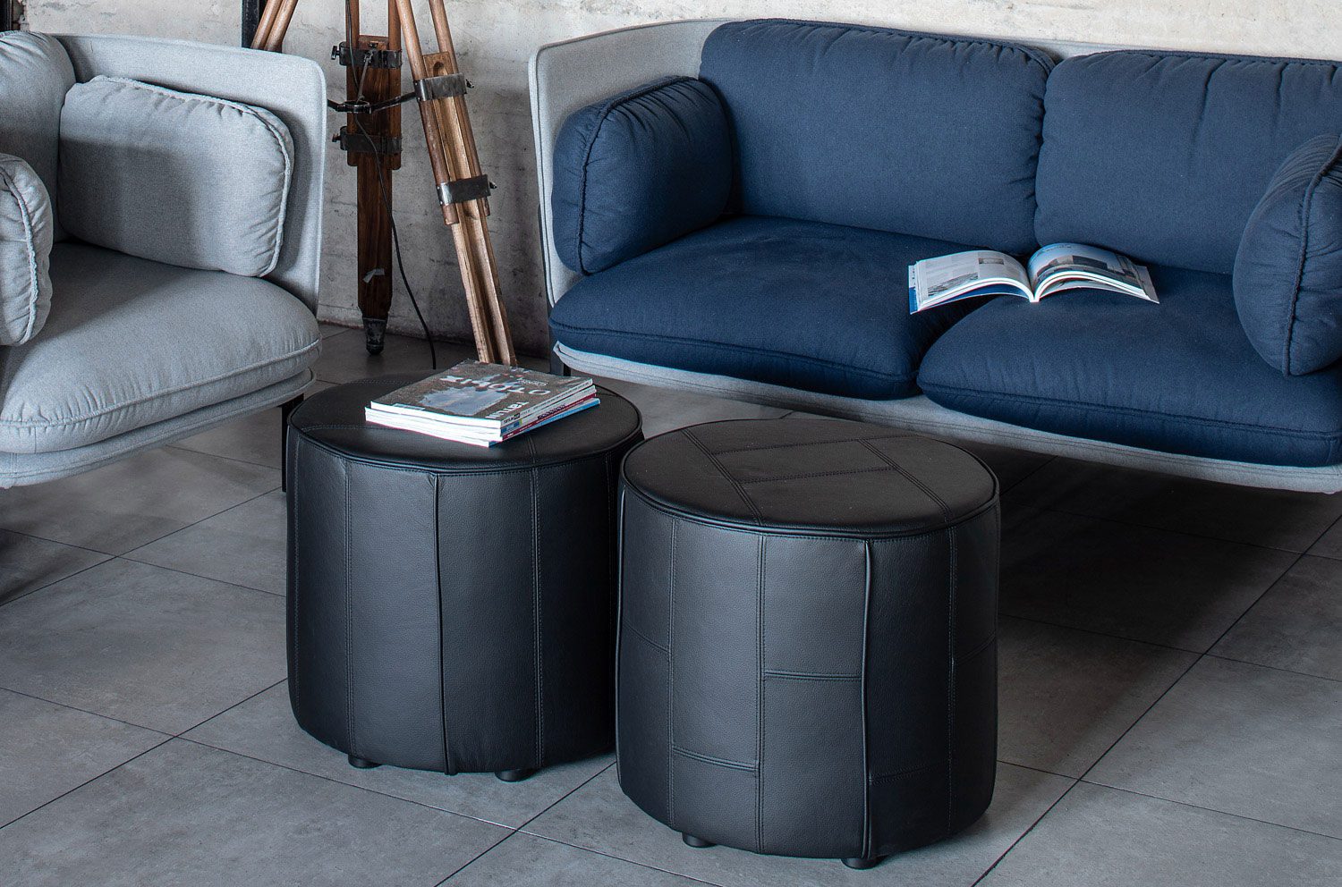 Коллекция «Prato» в складском ассортименте представлена пуфом цилиндрической формы в натуральной коже Dakota black черного цвета.