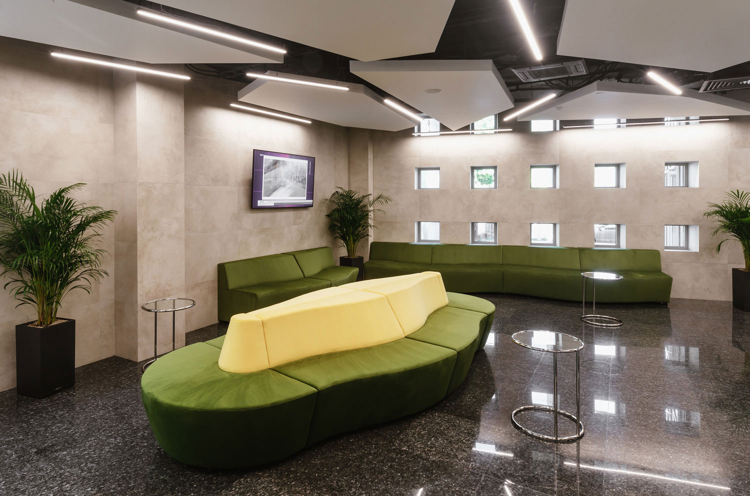 Комбинируя различные цветовые решения, можно создать интересный и яркий интерьер приемной, зоны неформального общения и даже тренинг-центра.