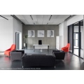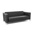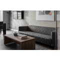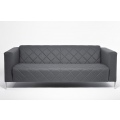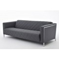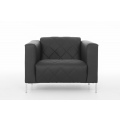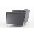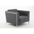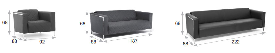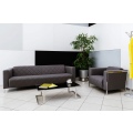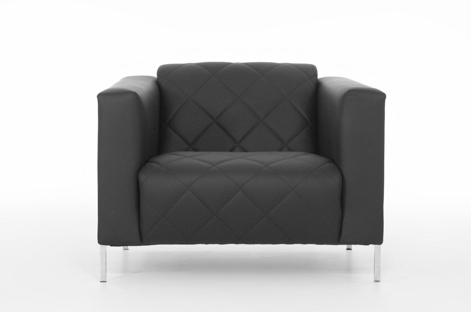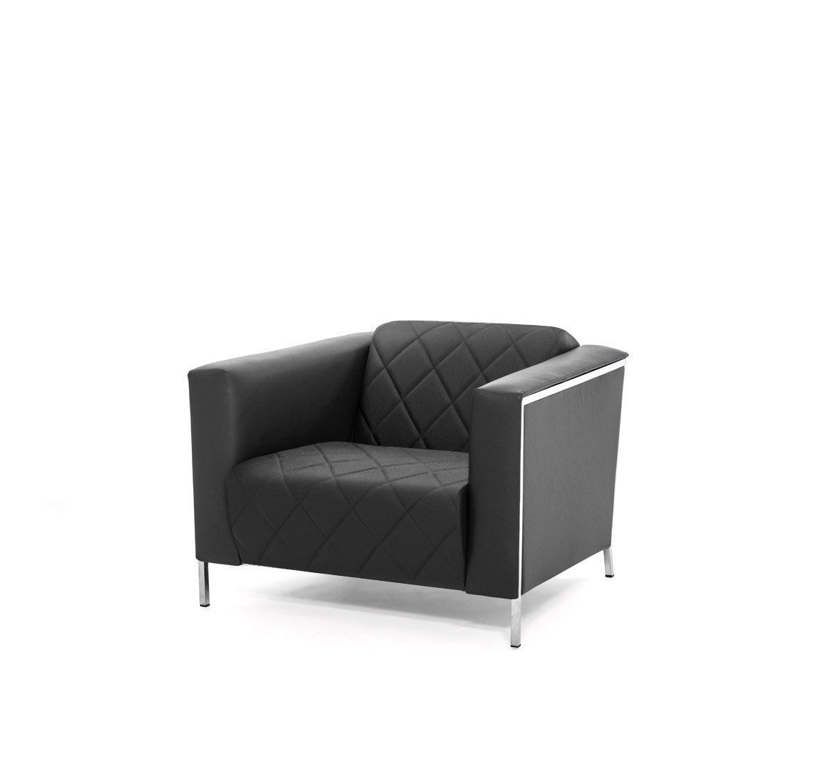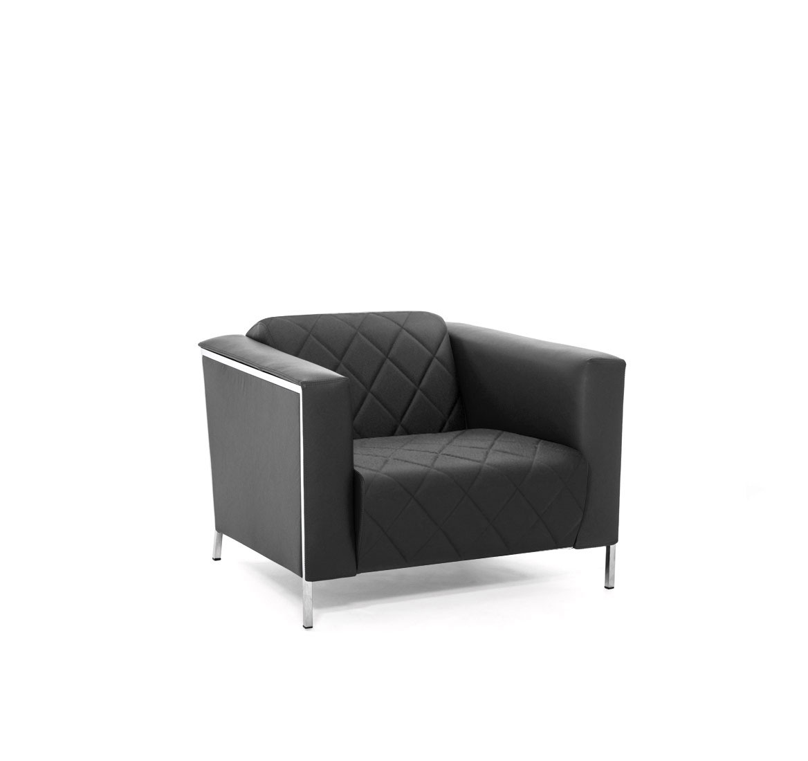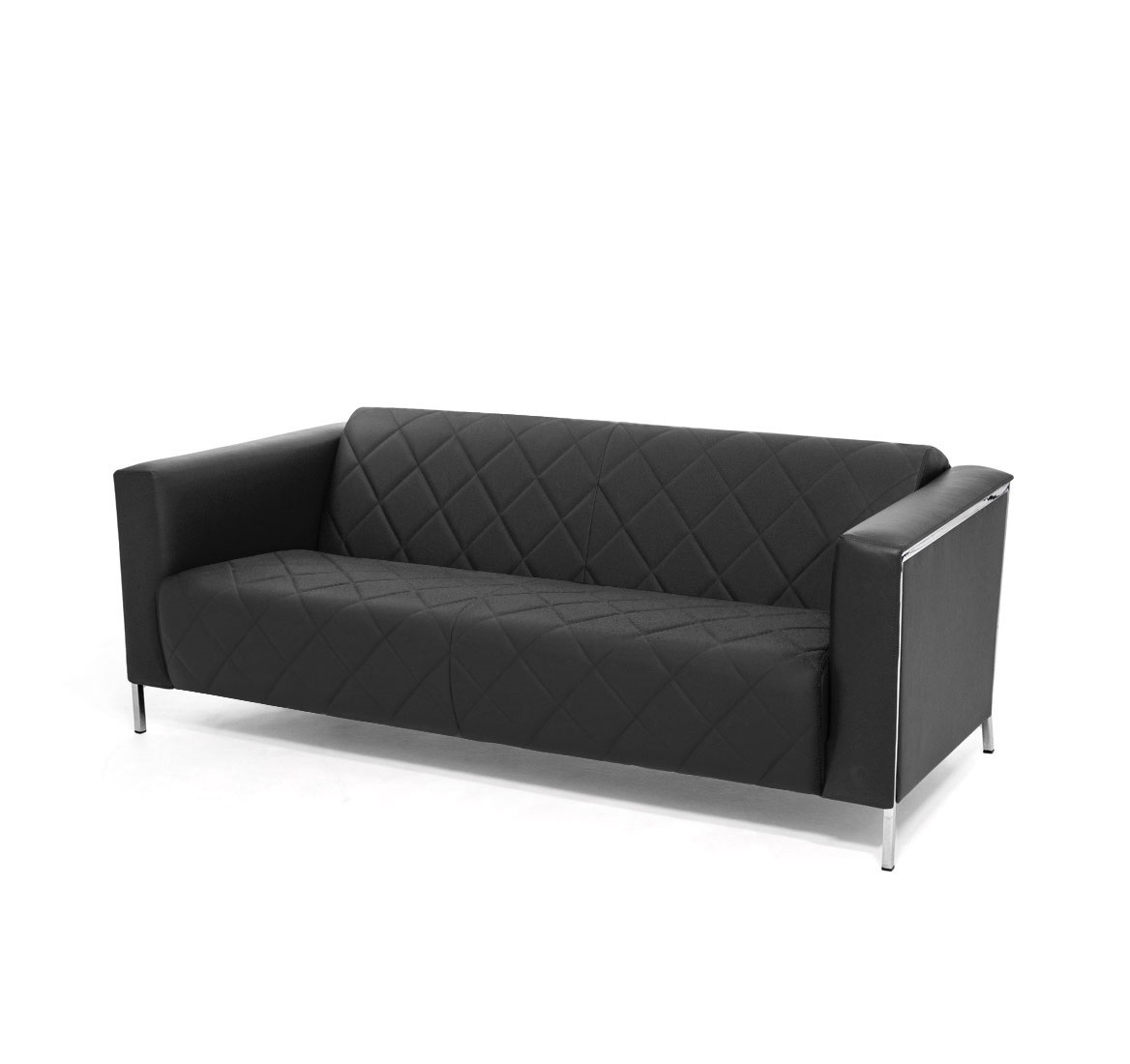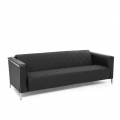 Коллекция "Vispo" в складском ассортименте представлена двух- и трехместным диванами и креслом c декоративной прострочкой, выполненными в серой шерстяной ткани или в черной коже в сочетании с хромированными опорами.