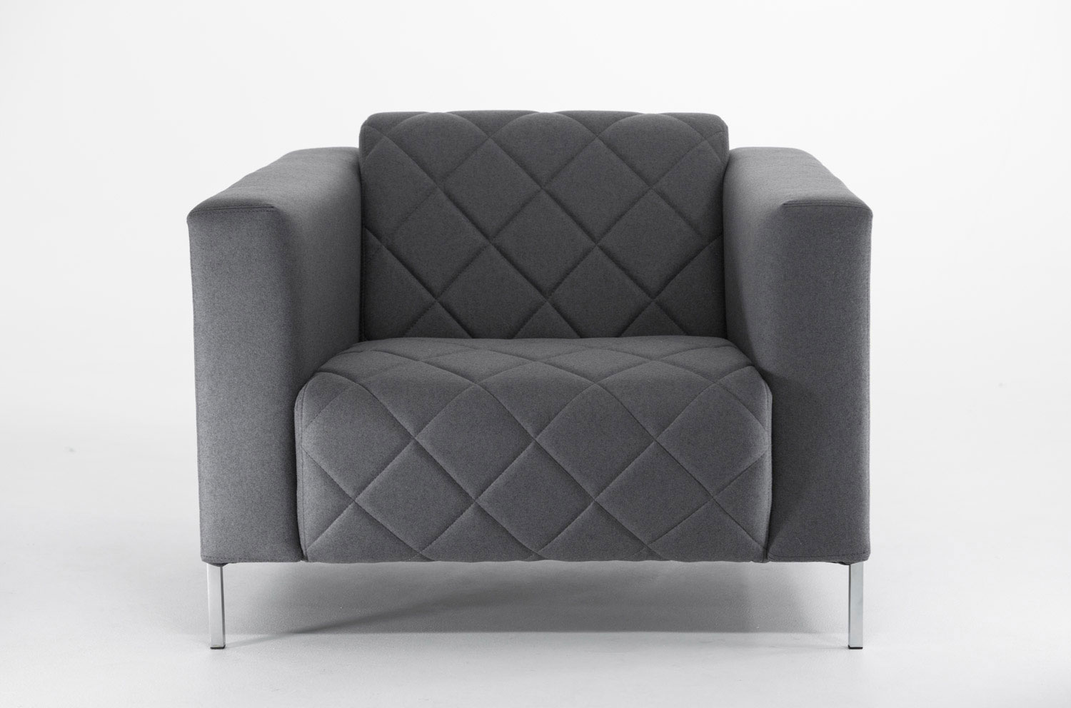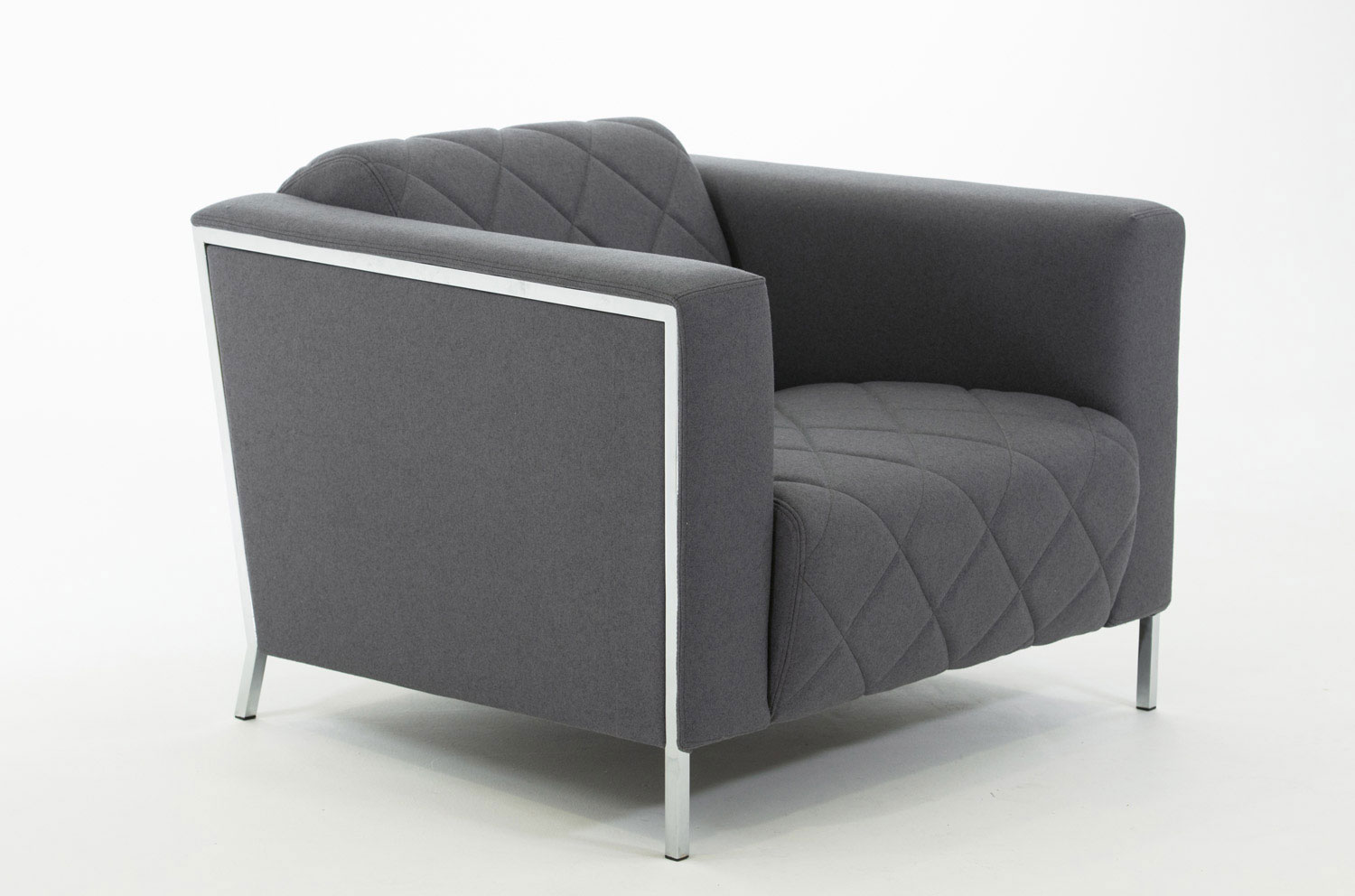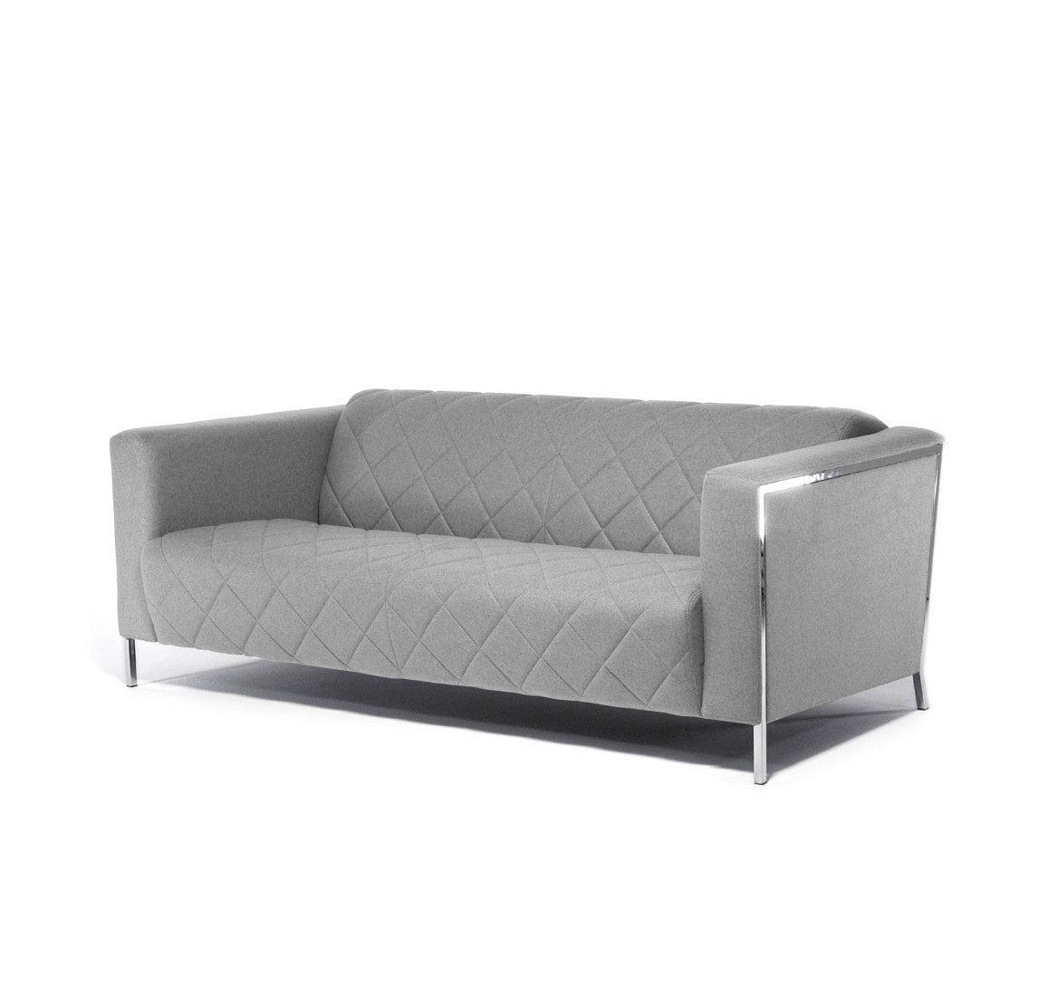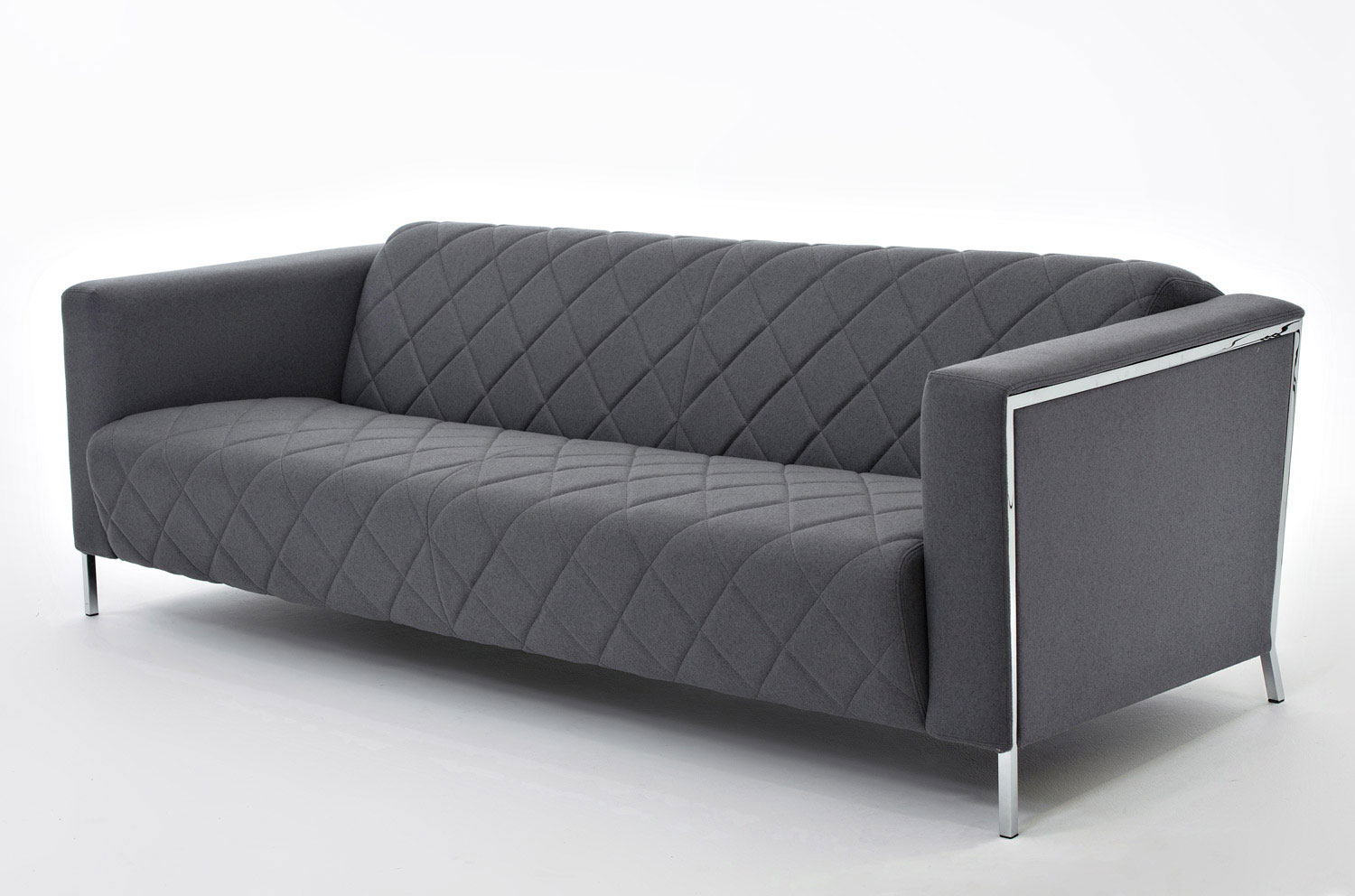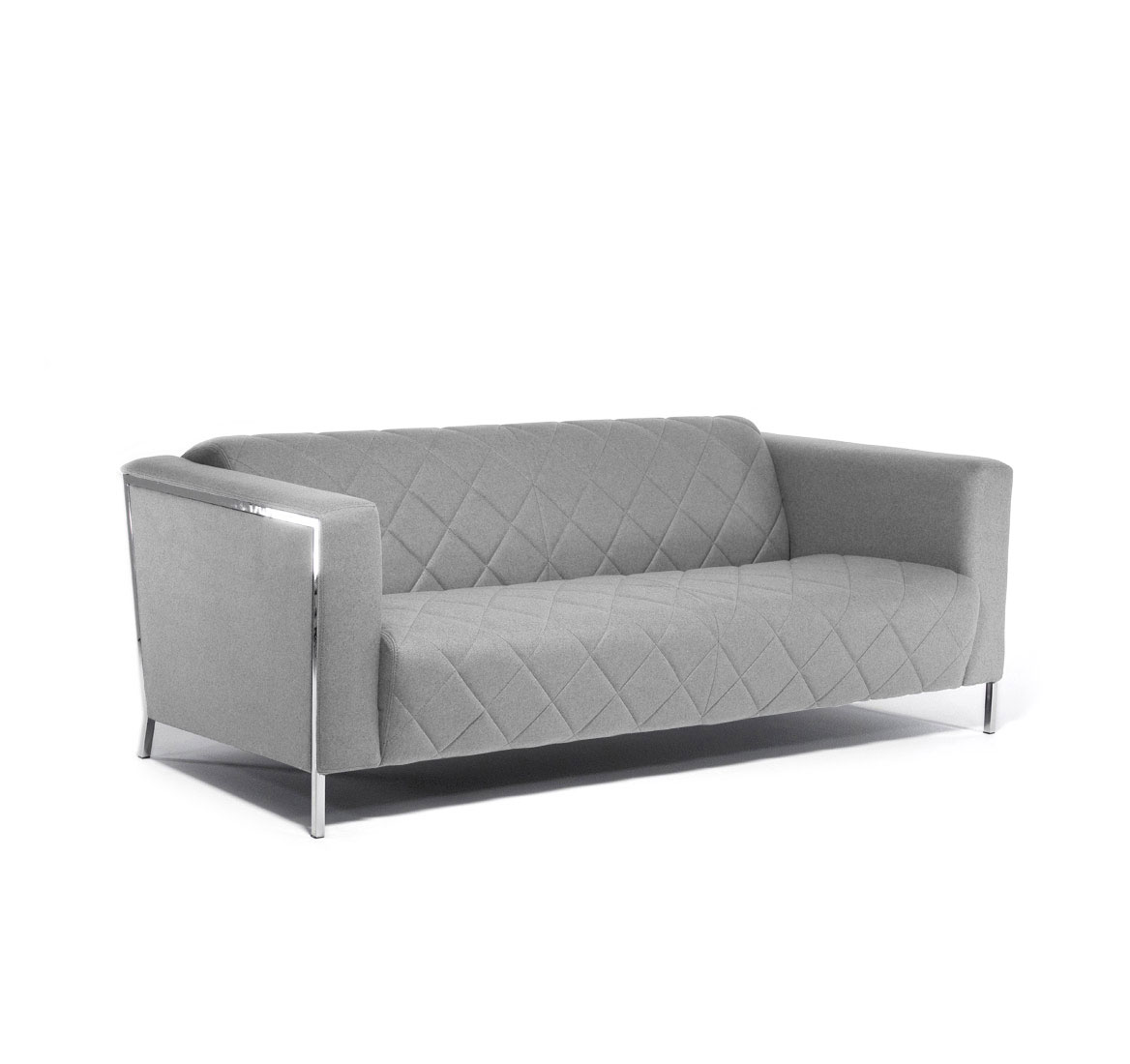 В коллекции "Vispo" мягкость серой шерстяной обивки контрастирует с металлическим блеском хромированных опор.