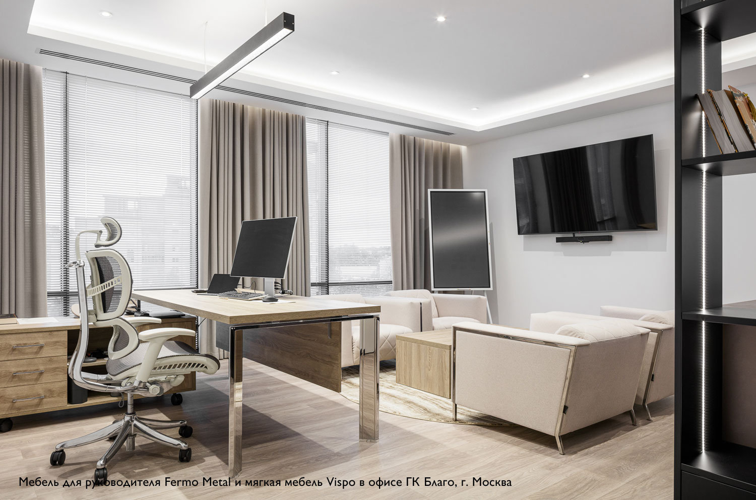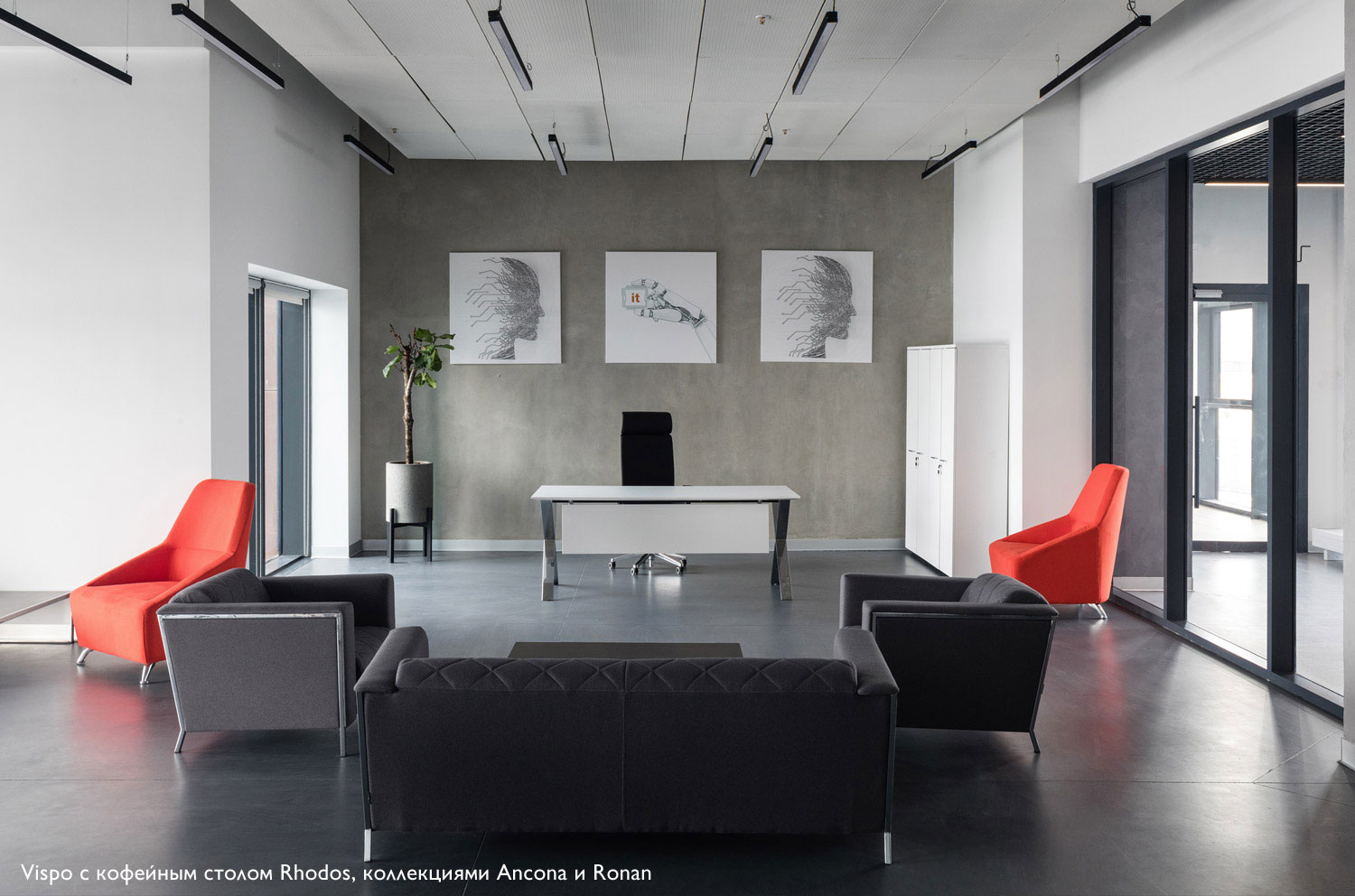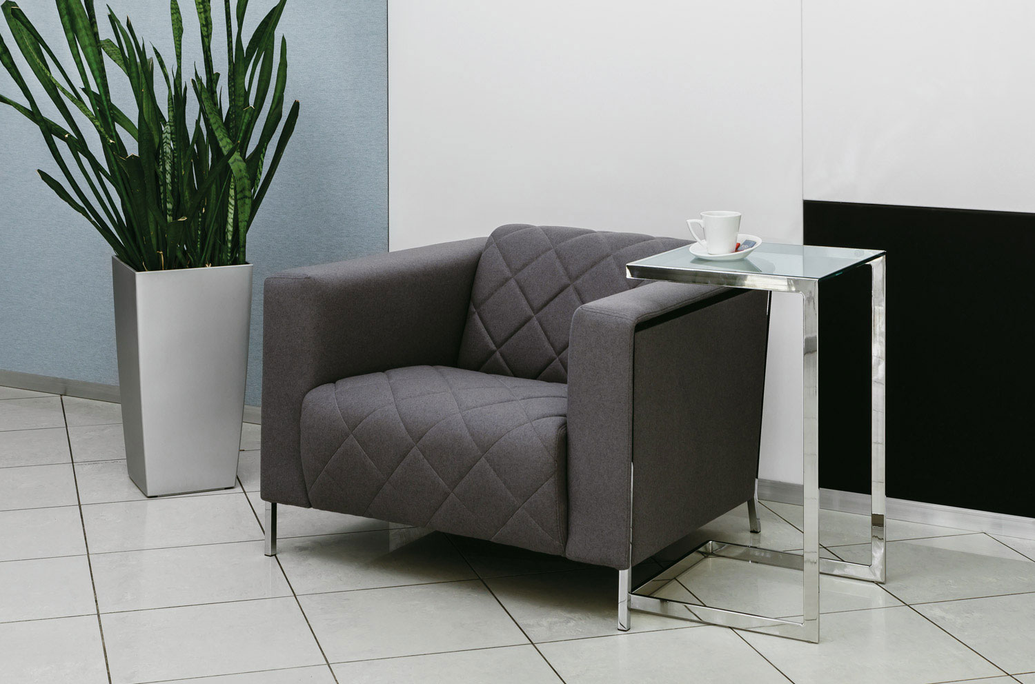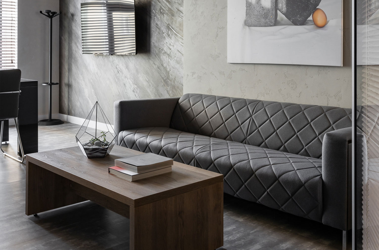 Шерсть — менее распространенный материал, чем кожа или ткань, поэтому с мягкой мебелью "Vispo" ваша приемная будет выглядеть современно и необычно.