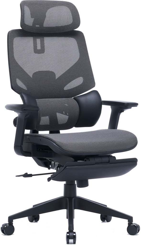 1915274 Кресло Cactus CS-CHR-MC01-GY серый сет./эко.кожа с подголов. крестов. пластик подст.для ног