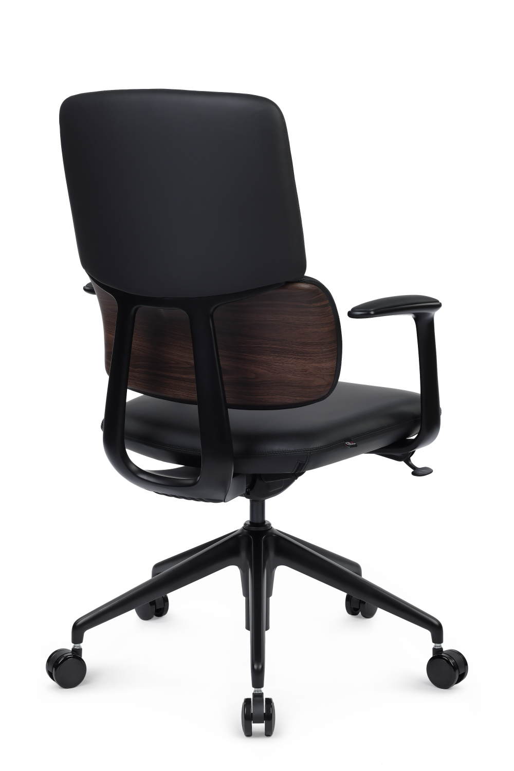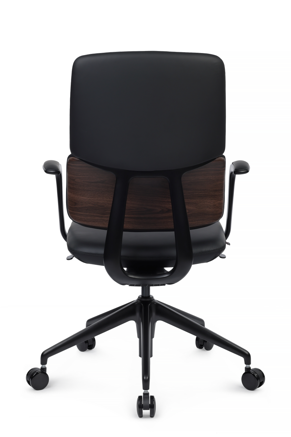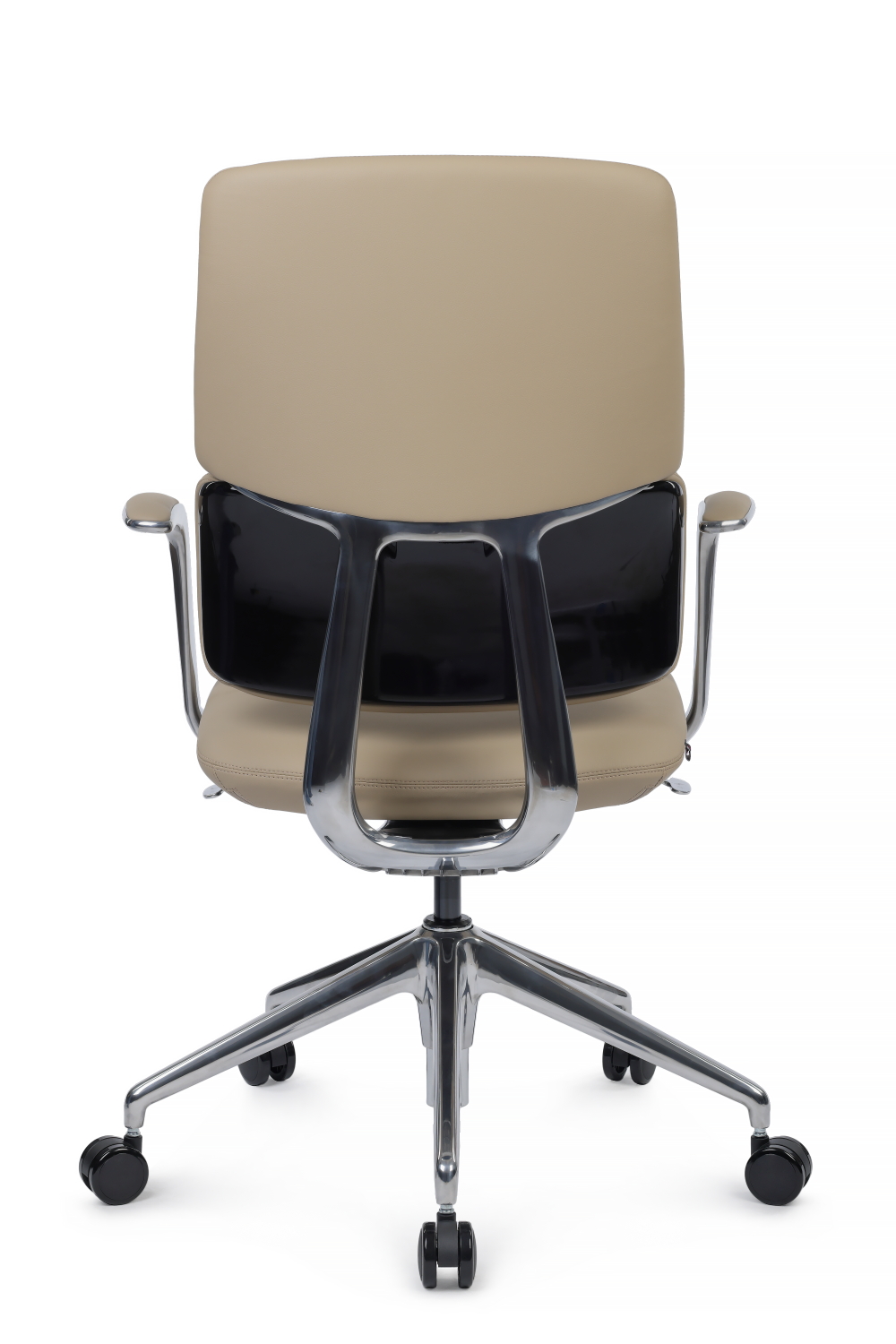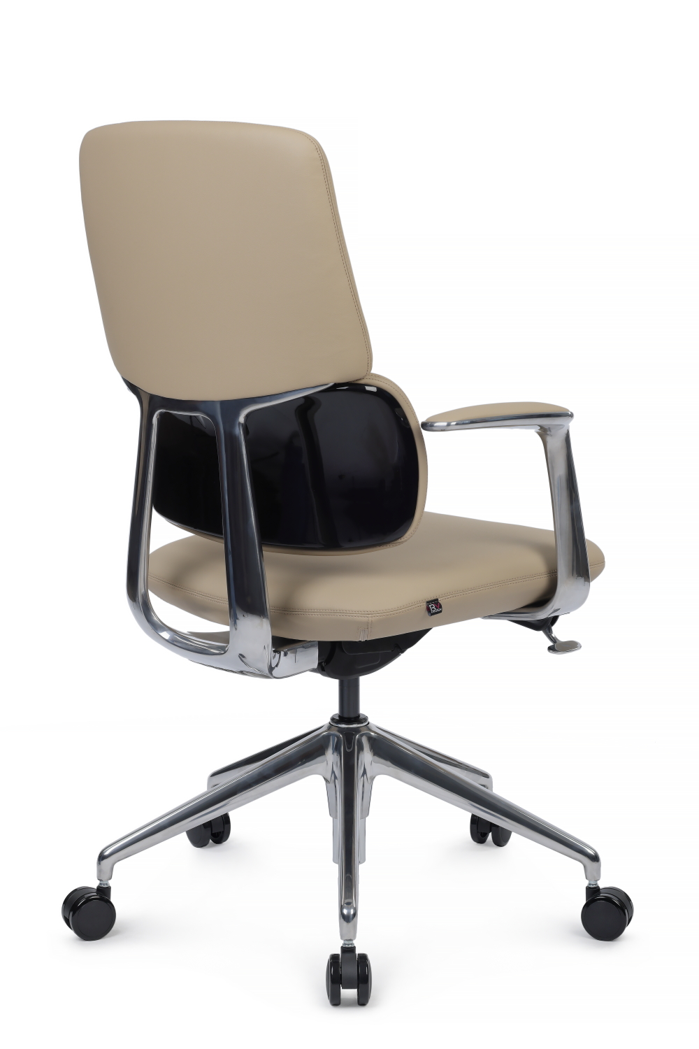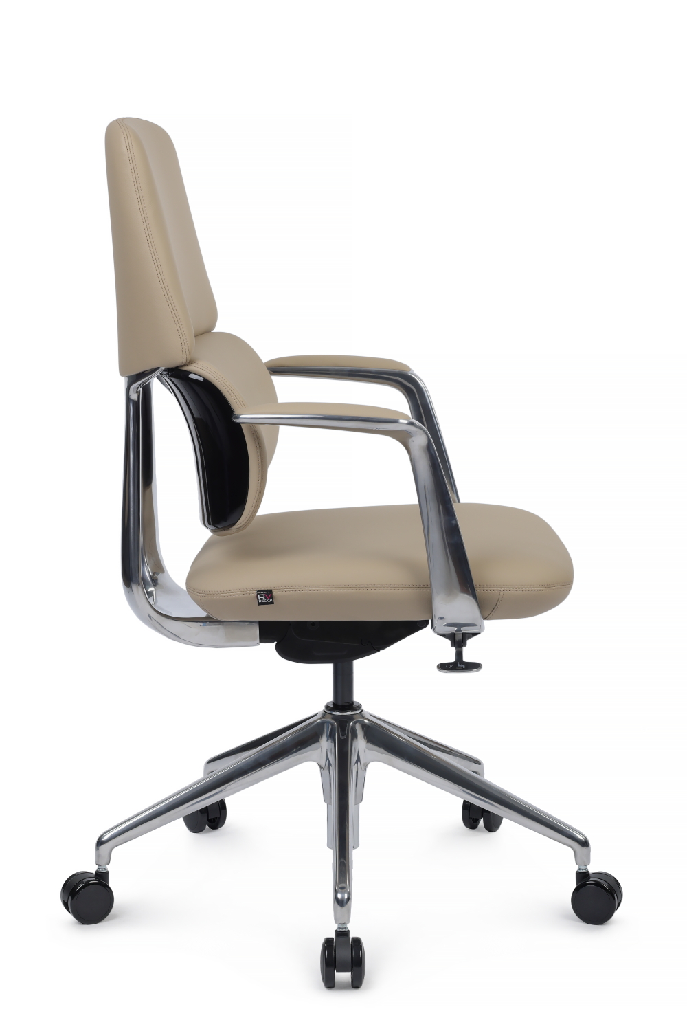 Подлокотники: черный алюминий, с накладками из натуральной кожи в цвет кресла