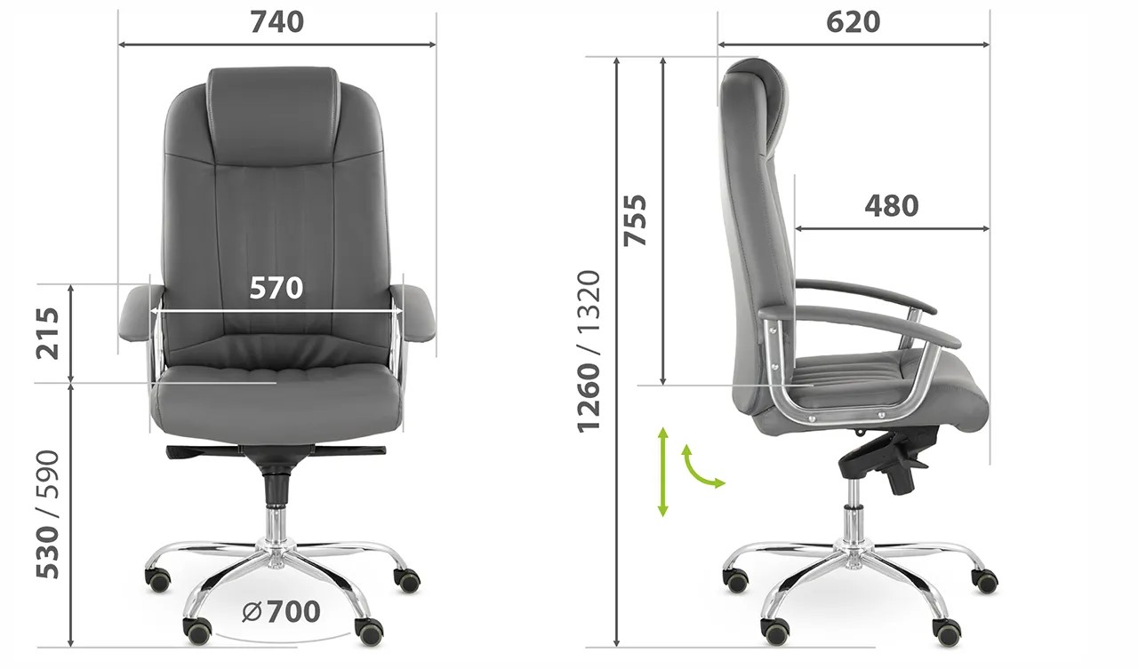 Увеличенное сиденье и широкая спинка созданы для людей среднего и высокого роста.
