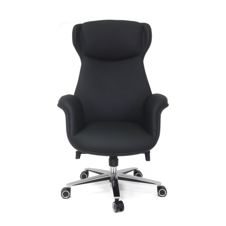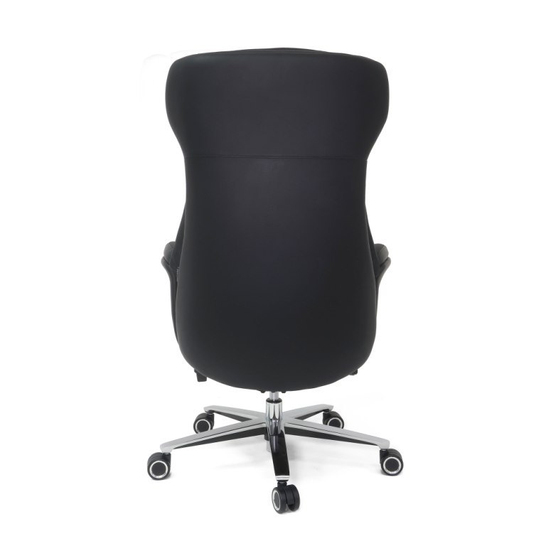 Асинхронное отклонение спинки и сиденья, большой угол наклона спинки, низ кресла обтянут экокожей, ролики увеличенного диаметра (64 мм), крестовина: верх полированный алюминий, низ - черное покрытие